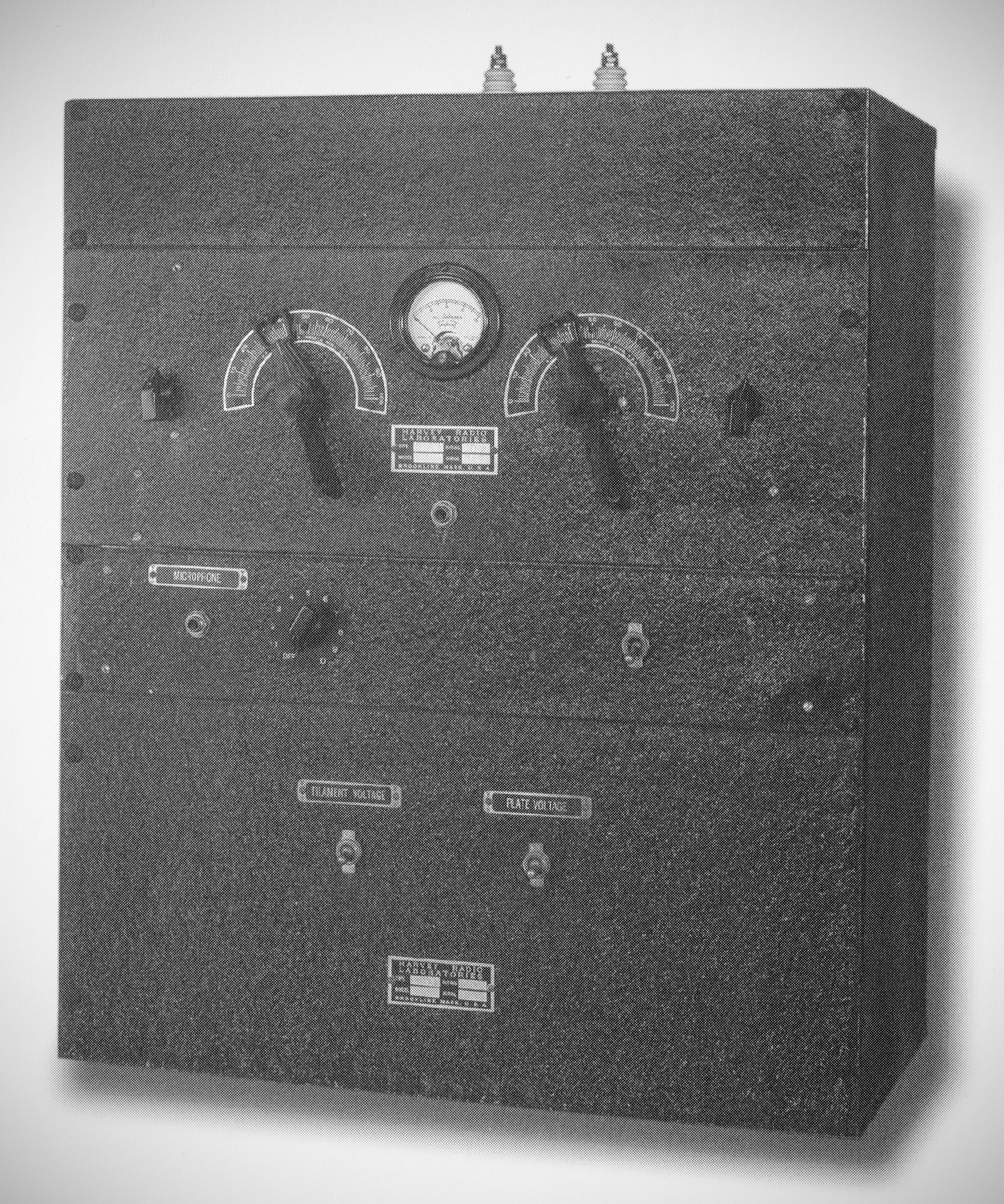 Harvey Radio Labs of Brookline, Massachusetts produced the 60-T transmitter in 1935. Output from the RK-20 final was 50 watts CW, 15 watts grid-modulated AM. The transmitter pictured is a model A, which covered 160, 80, and 40 meters. The B model covered 80, 40, and 20.