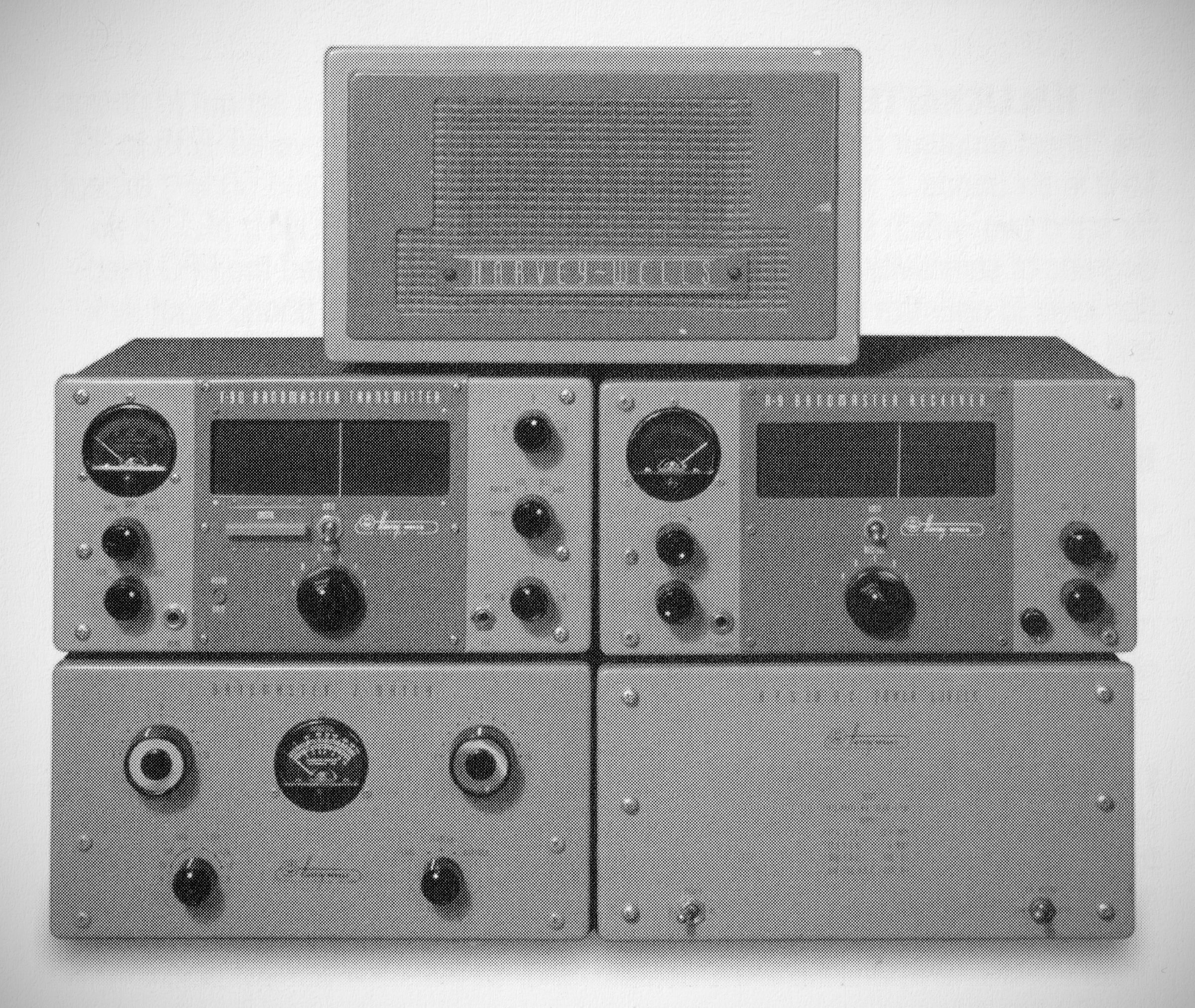 The individual components were housed in similar-size cabinets.