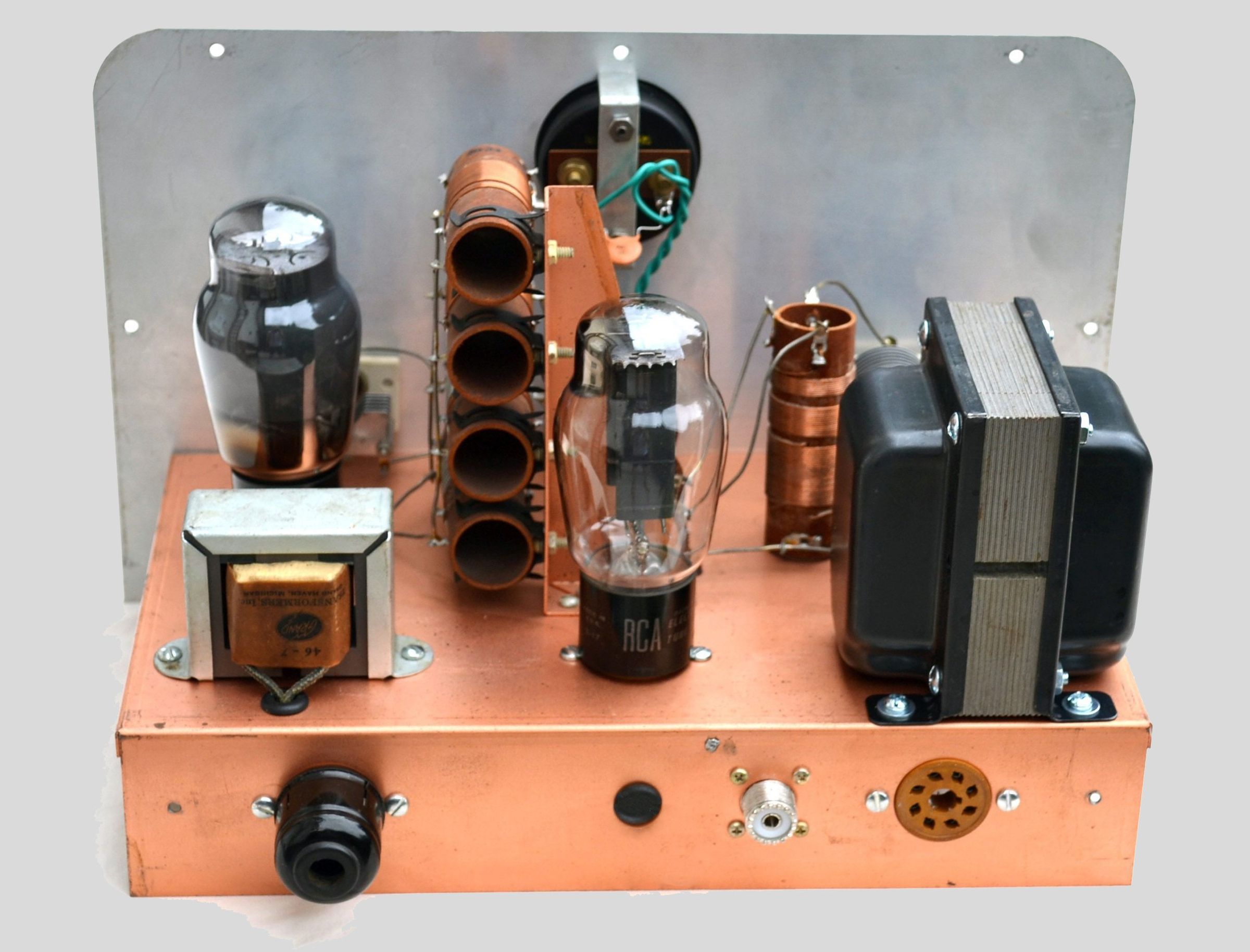 While it was just a basic three-tube design (5U4, 6AG7, 6L6), Heath included some nice features. For example, there were provisions for a mod ulator (though Heath never made one) and a VFO. Additionally, the AT-1 included an internal power supply, was built on a copper plated chassis, and incorporated single-knob band switching—no need to swap coils. The final input powe is from 25 to 35 watts, depending on which ad you read, with coverage from 80 through 10 (including 11) meters.