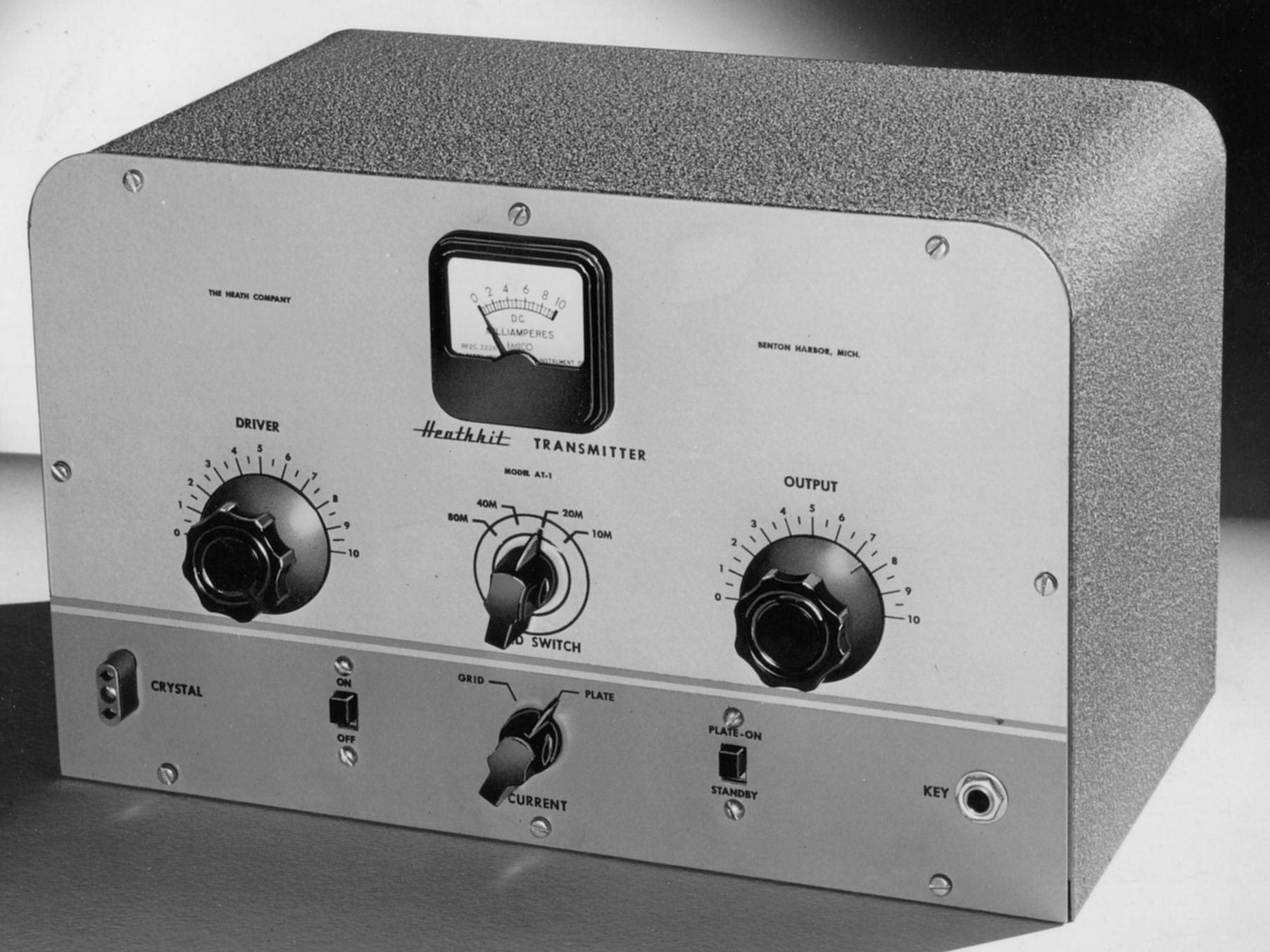 The AT-1 was introduced in Heath’s 1953 spring flye and appeared on the pages of QST in July of that same year, along with the AR-2 and GD-1A. The AT-1 was Heath’s first serious enty into ham radio and as a result, it is highly sought after by collectors. Inspired by the creation of the Novice class license, this radio stormed the novice market and set Heath on a course for fame and fortune.