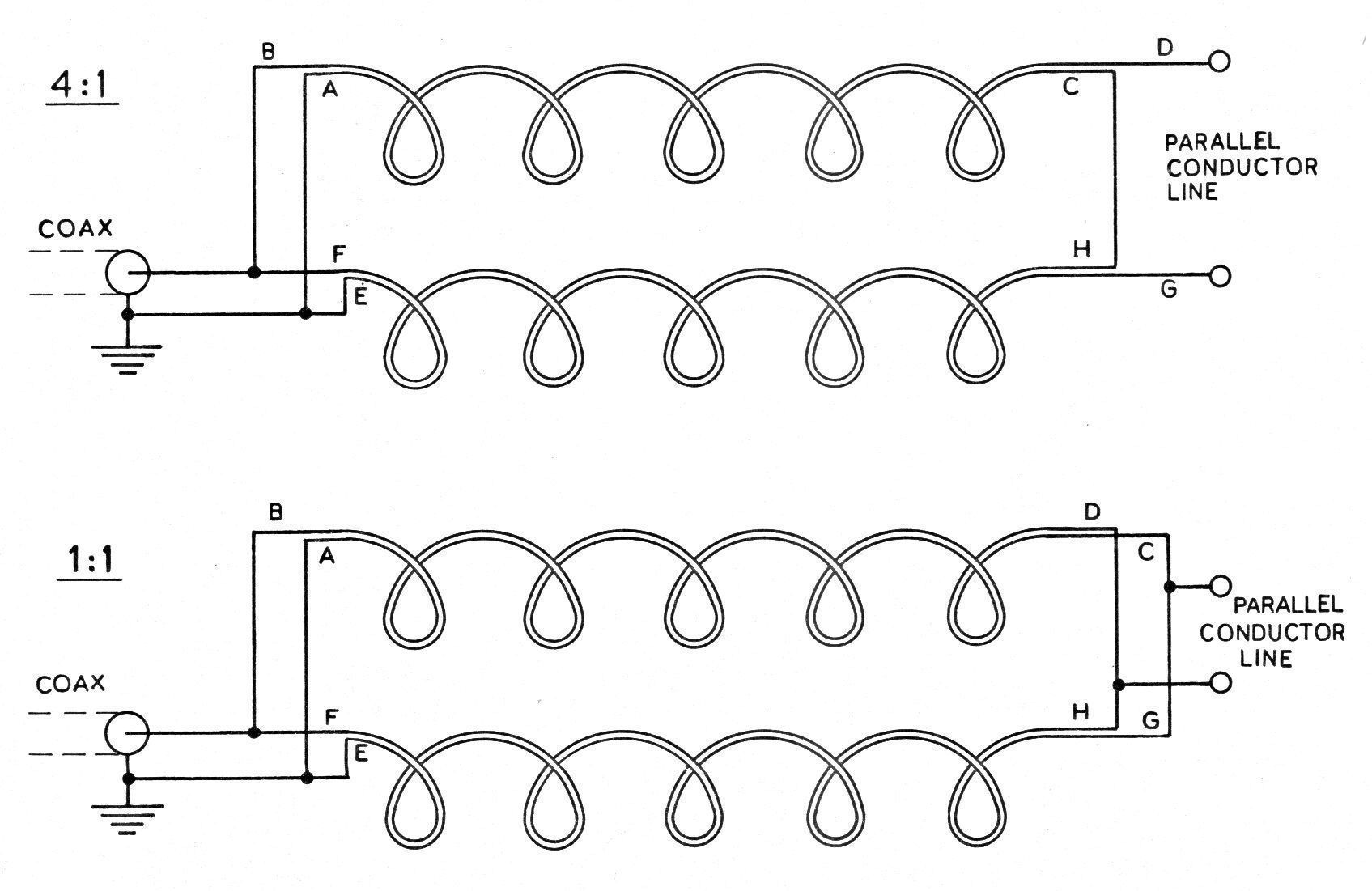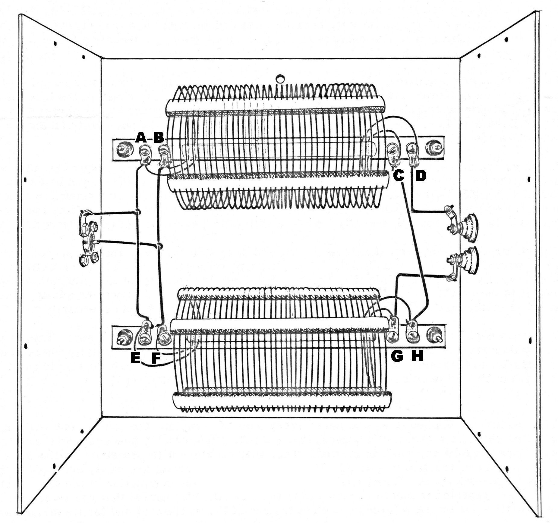 There are two wiring options for the B-1, depending on which matching ratio is desired. For a 1:1 match the coils are wired in parallel. Refer to photos. Note the connections to lugs C, D, G and H.