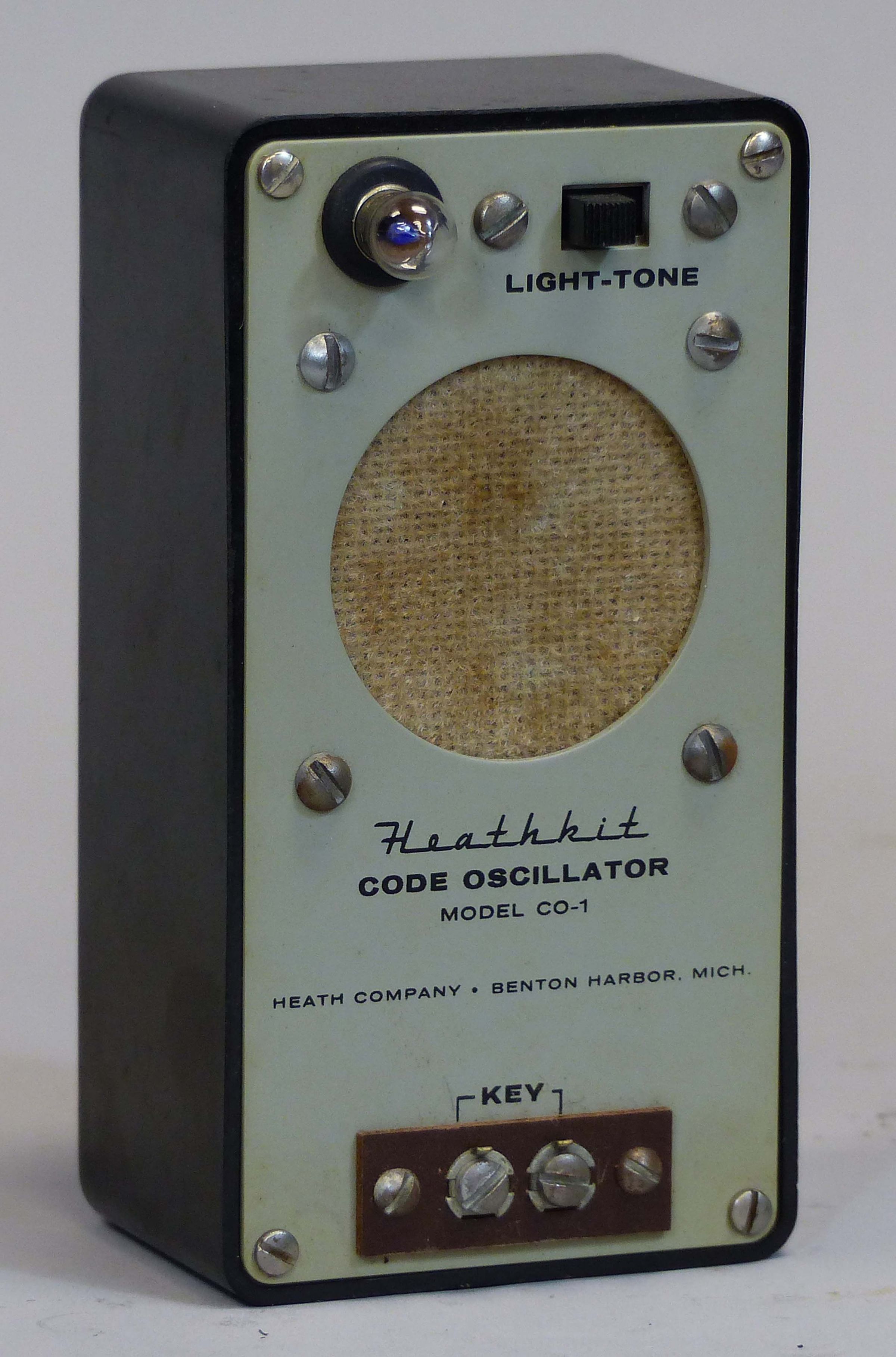 The first of three code practice oscillators made by the company, this transistorized, battery-powered unit didn’t match any other Heath amateur product in size, shape, or color scheme. The unit is enclosed in the same black plastic box used with the small resistance substitution boxes as well as the CR-1 crystal radio.