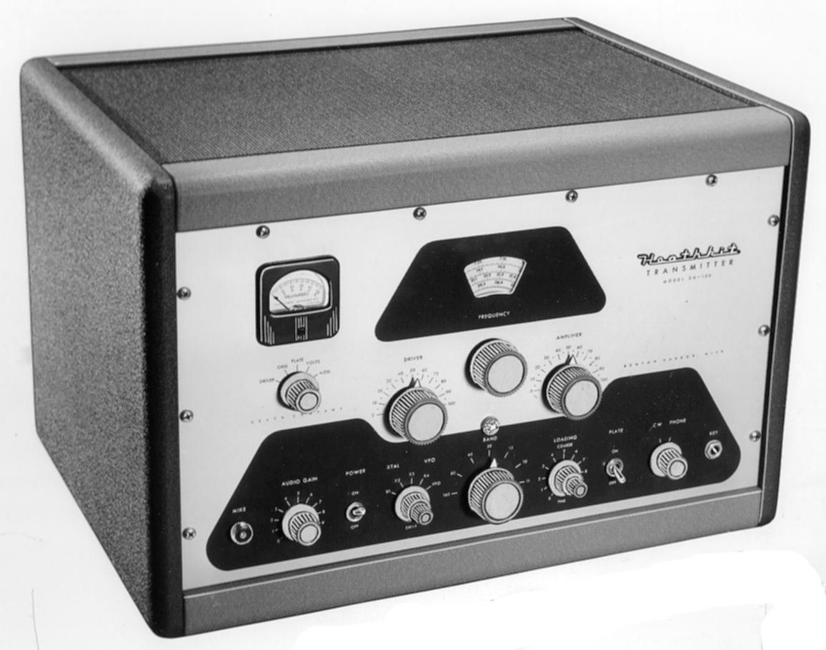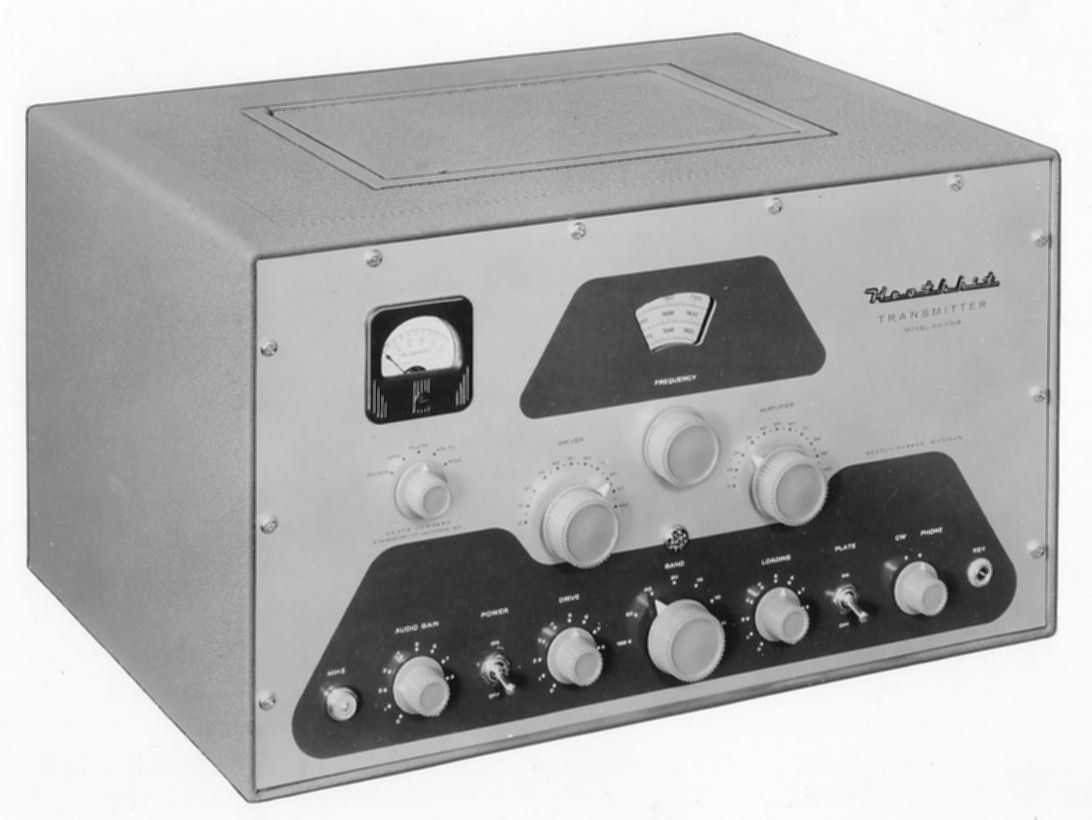 The two-tone gray DX-100 and 100B (there was no A version) were the first of Heath’s big guns and the first in the DX series. They were immensely popular. At 100 pounds, these massive 15-tube transmitters were typical of the era.