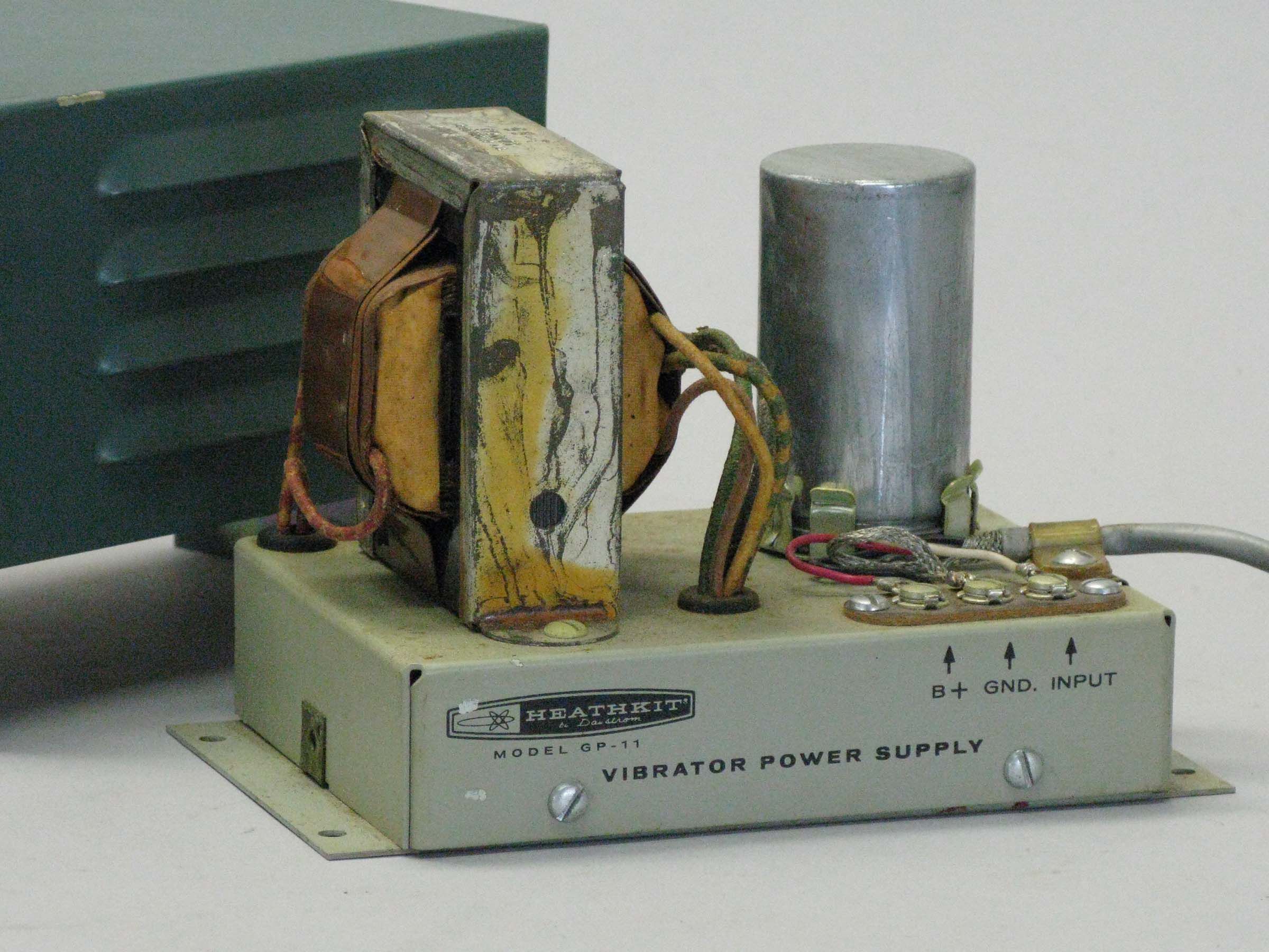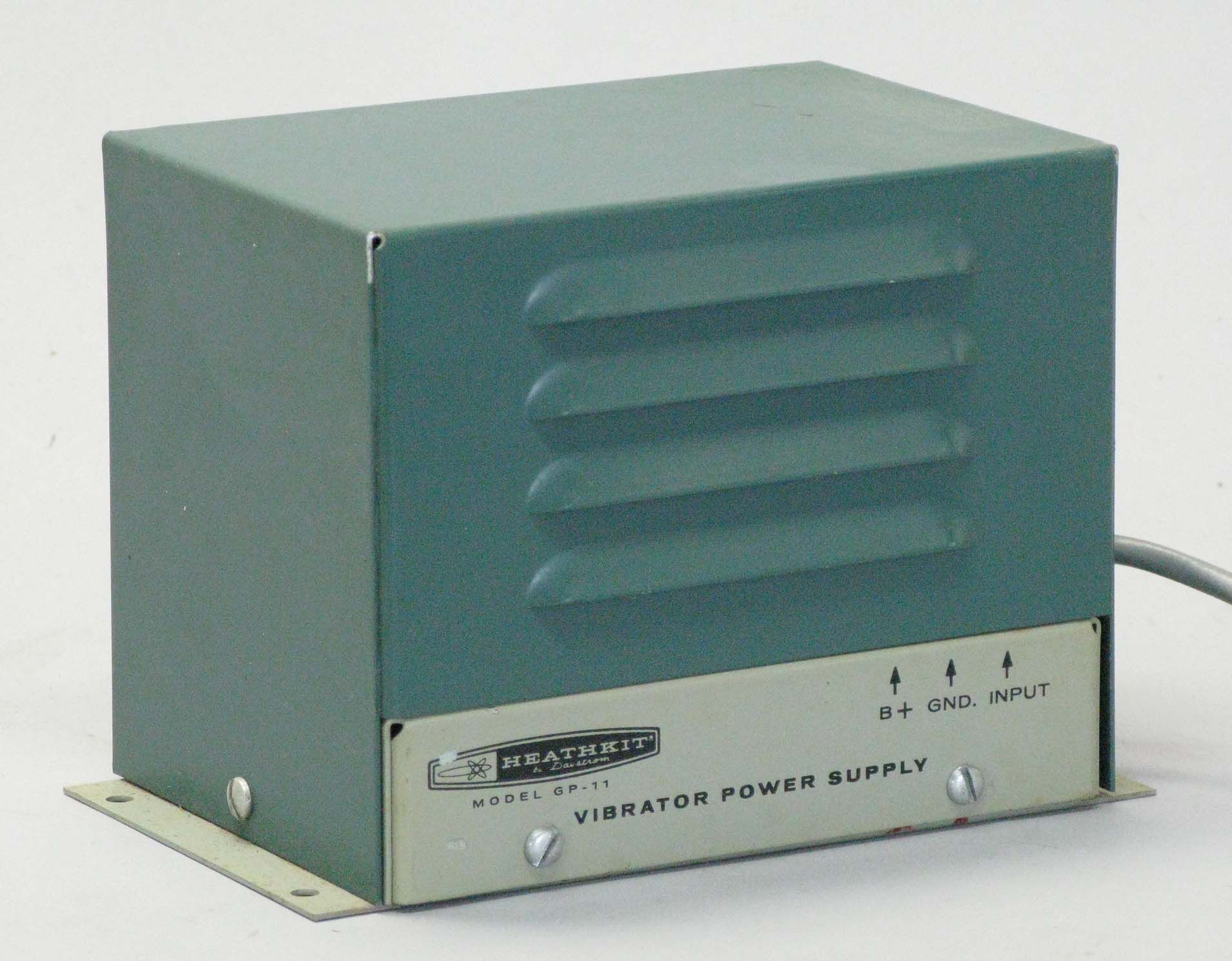 The GP-11 replaced the VP-1-6 and VP-1-12 as Heath’s light-duty mobile power supply, and was promoted specifically for use with the Lunchbox transceivers. While the GP-11 still uses a vibrator, at least the vacuum tube of the VP series was replaced with silicon diodes.