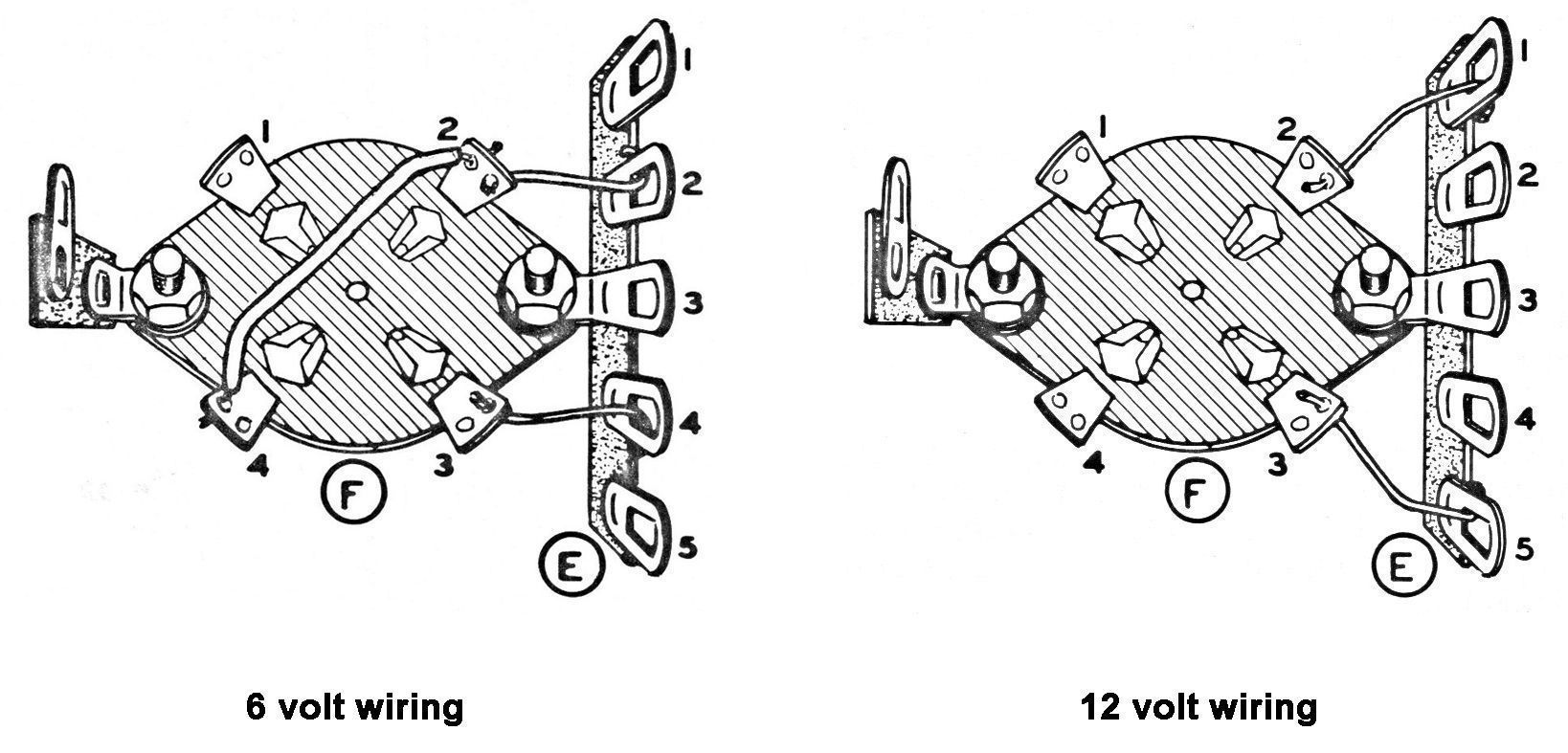 To determine the voltage for which the GP-11 has been wired, refer to photos for the location of vibrator socket F and terminal strip E. The voltage may easily be switched by changing the wiring as shown.