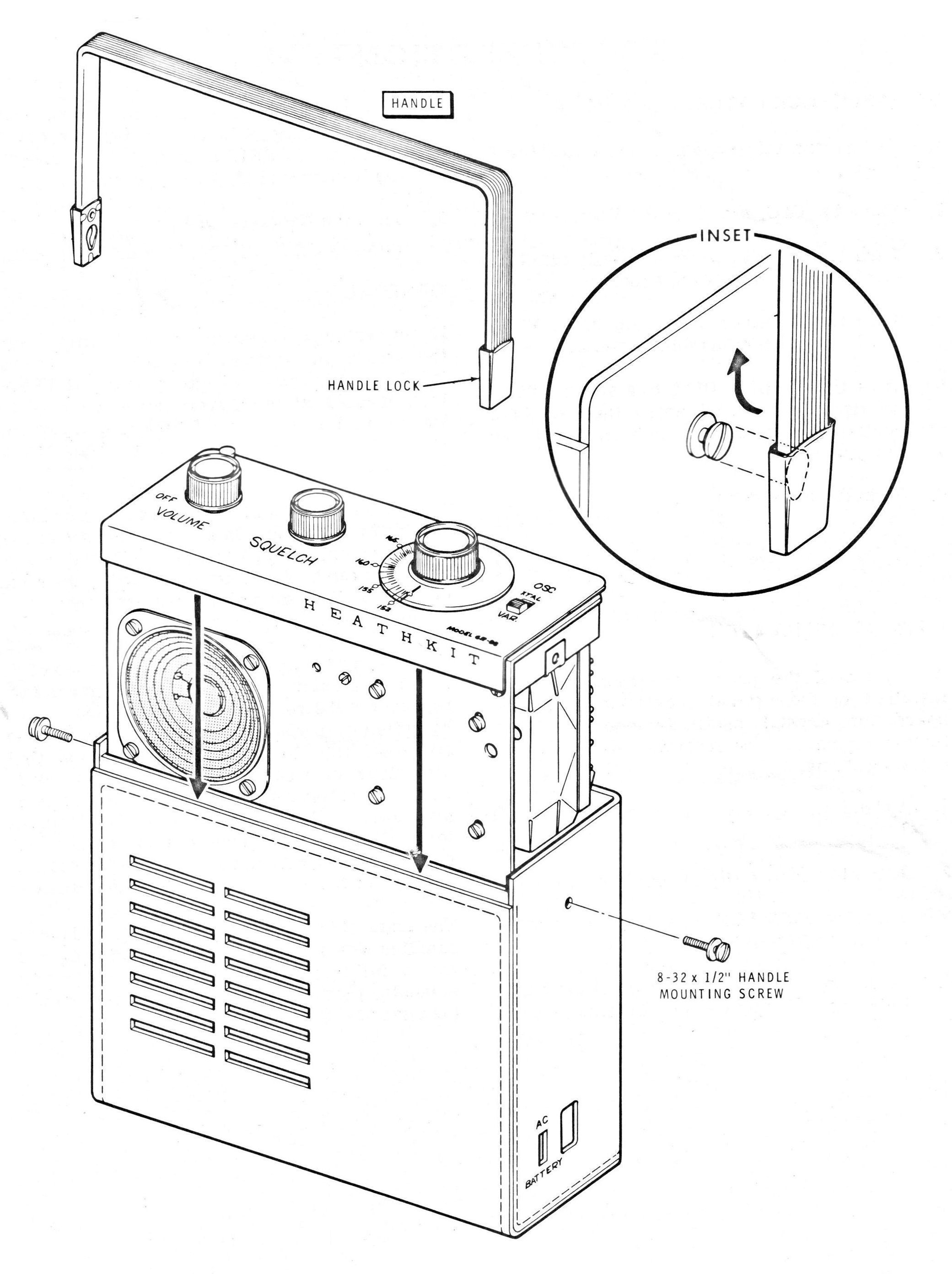 To check for battery leak damage, remove the case by removing the handle and handle mounting screws. To remove the handle, put the handle in the vertical position and push down on each side. Refer to Figure 2.