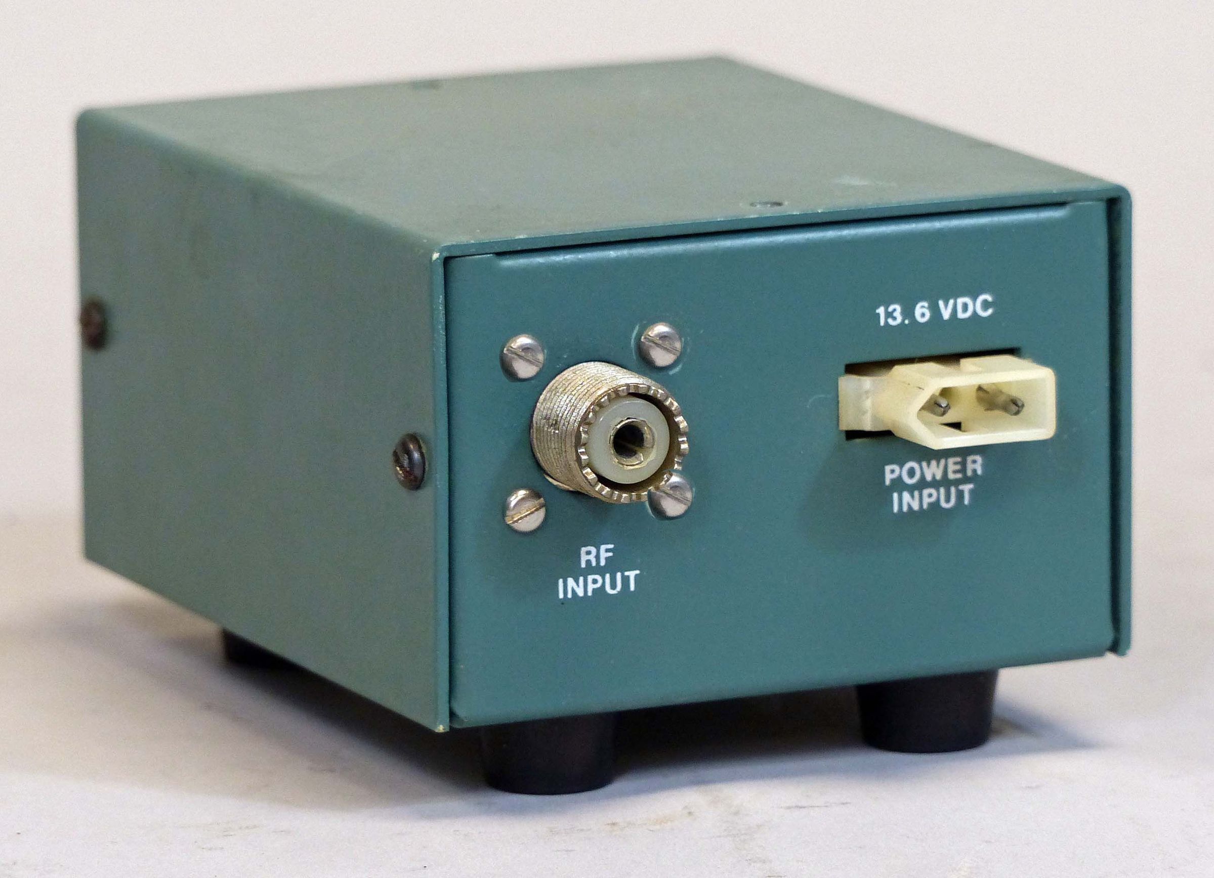 Released on the heels of the popular HA-202, this tiny amp was designed specifically to boost the signal from a handy-talkie. It provides about 8 watts of output with 1 to 3 watts of drive. The HA-201(A) is fully solid state, no mechanical relays are used in switching. The amplifier will withstand infinite VSWR without failure but is not indestructible.