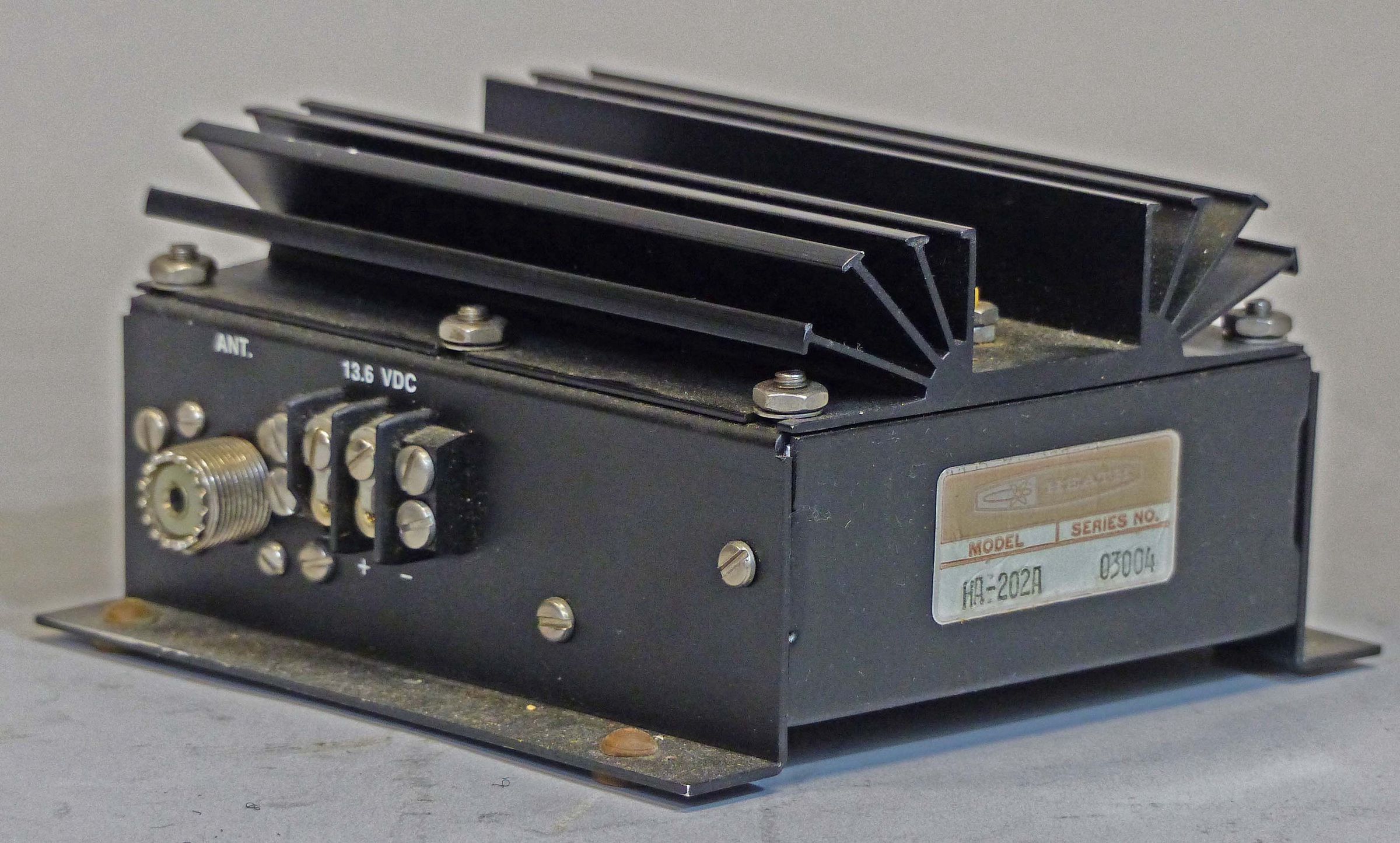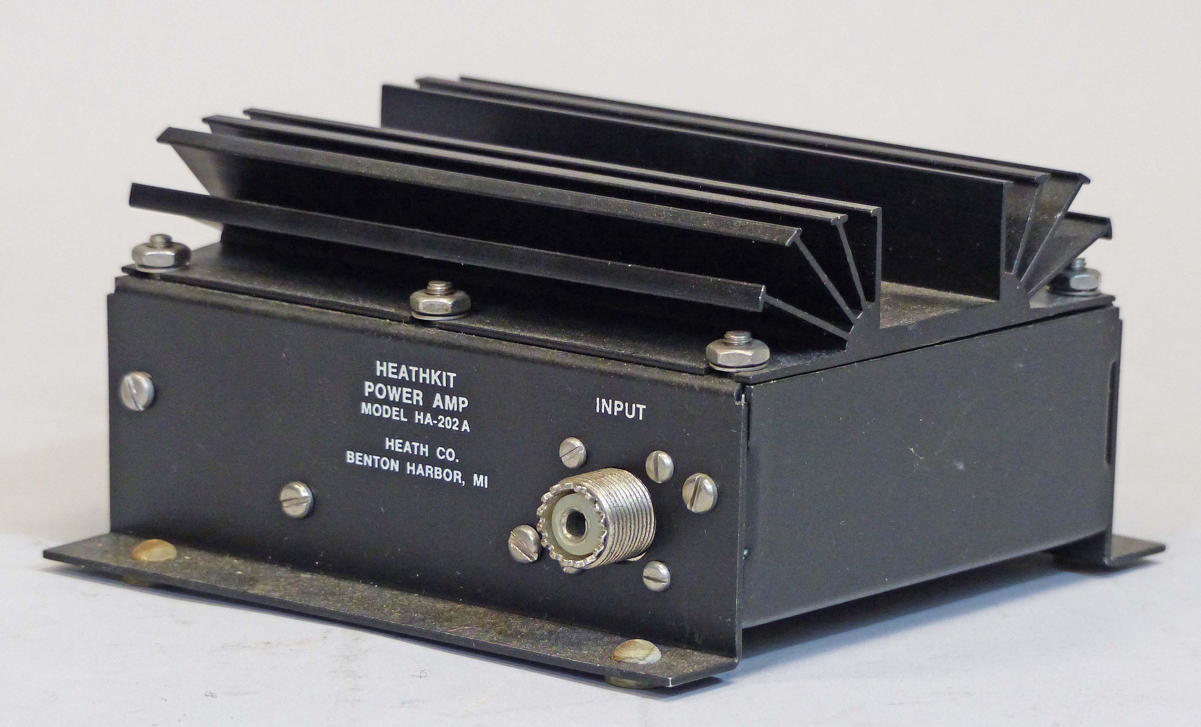 The HA-202 was designed and sold primarily for mobile operation but works equally well in fixed station use. It will cover any 1.5 MHz portion of the band between 143 and 149 MHz. A pair of 2N5591 transistors in push-pull will withstand up to 3:1 SWR and depend upon a big heat sink to keep them cool instead of “exotic sensing circuitry.” Tuned input/output is 50Ω nominal. The HA-202(A) tunes up with a VTVM or SWR bridge, a dummy load, and a broadcast band receiver (to listen for oscillations).