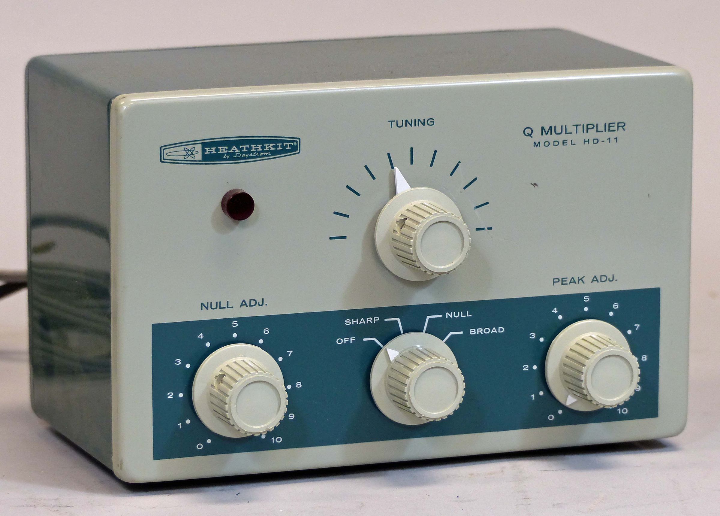 The HD-11 is essentially the same Q multiplier as the older QF-1 but with the addition of a built-in power supply, a pilot light, and the classic Heath two-tone green paint scheme. For additional details and specifications, refer to QF-1. Also see GD-125—the product into which the HD-11 would eventually evolve—still the same basic design.