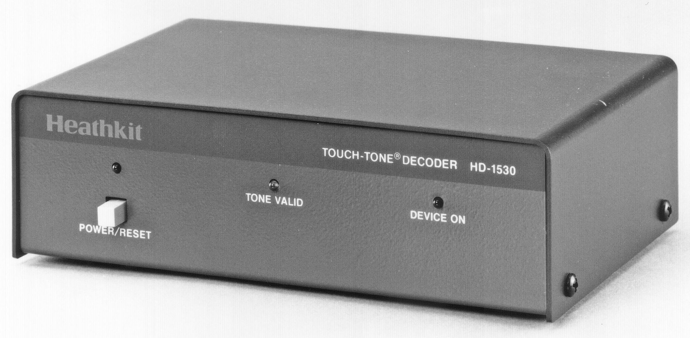 The HD-1530 connects between a receiver audio output and a speaker. It keeps the speaker muted until it hears the correct Touch-Tone code—your basic tone-calling scheme. It also provides a contact closure for control of a repeater or autopatch (or anything else for that matter) upon receipt of the right code.