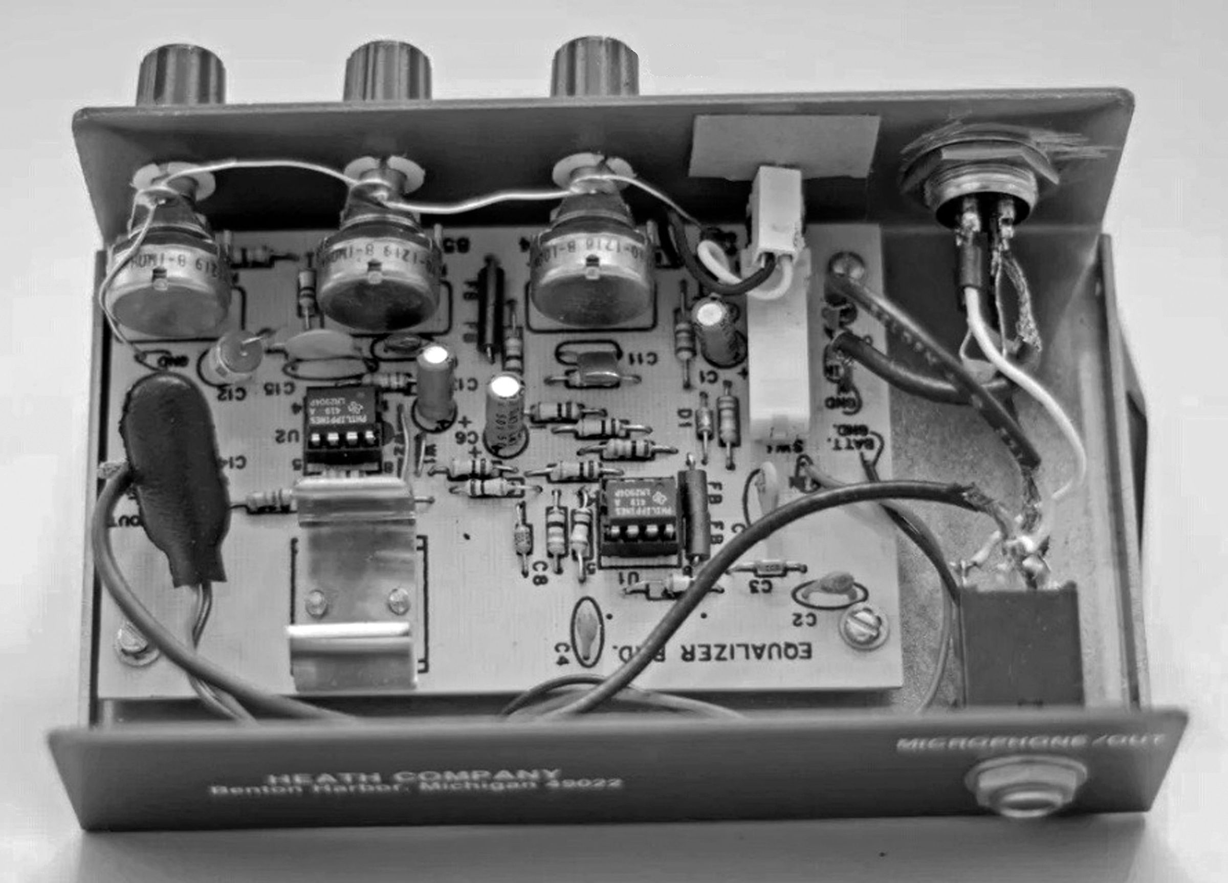 The Microlizer is a fairly simple device that permits the user to tailor the audio of the station mic in an effort to “obtain maximum SSB output with a clearer sounding signal.” The HD-1986 permits a 12 dB boost or cut at 490 Hz and 2800 Hz, and overall microphone signal level into the transceiver.
