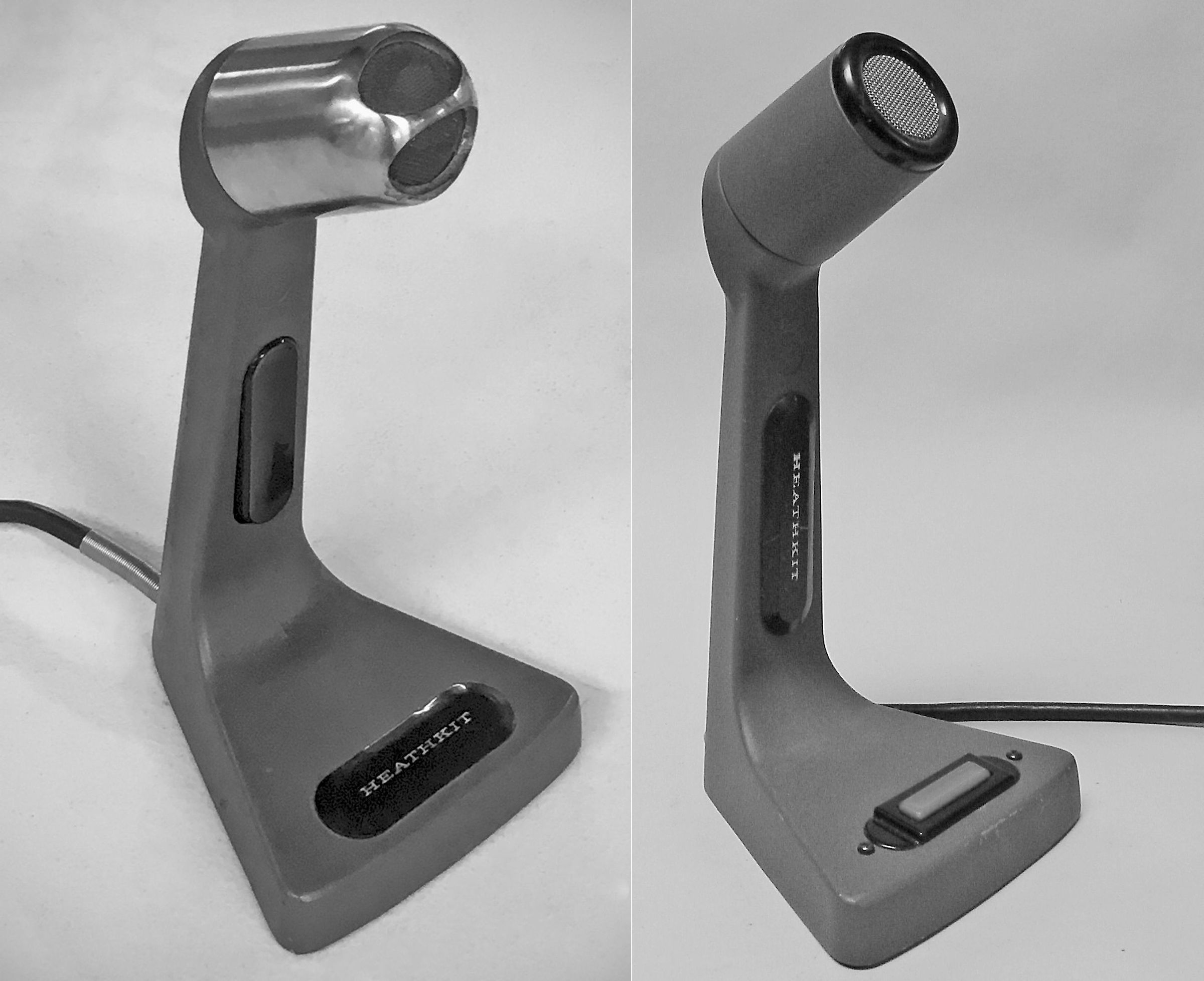 Introduced a couple of years before the SB-104.These mics can be assembled so that the PTT switch is on the stem (as in left photo), or the base (right). The PTT switch on the HDP-121 is black. A less expensive red switch is used 121A. Both models are “non-reflecting” gray.