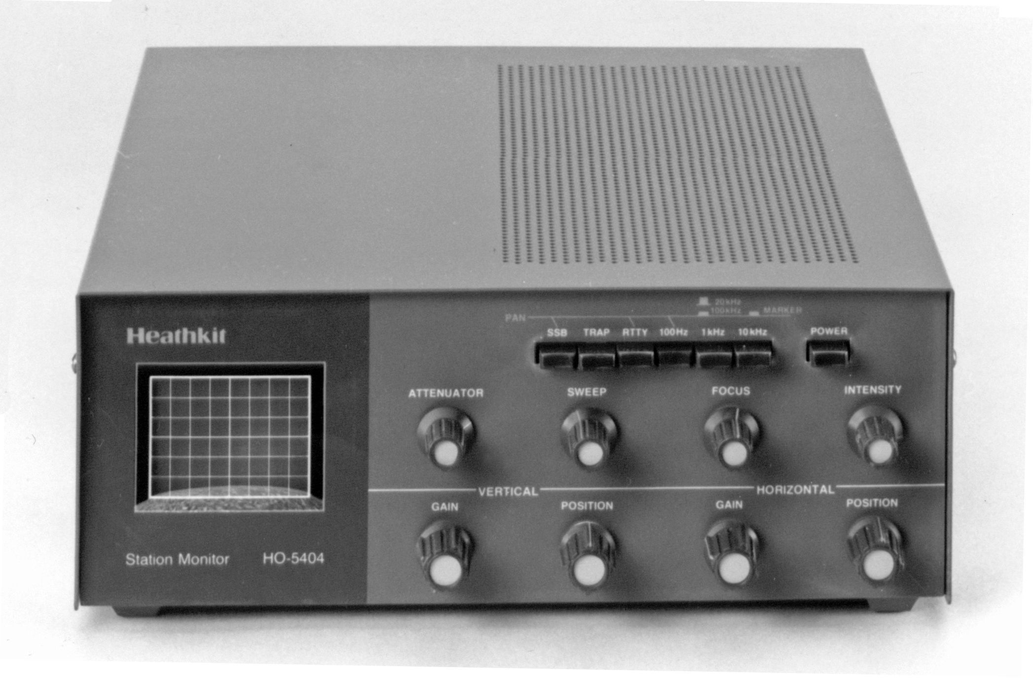 The HO-5404 was Heath’s last ham related scope. Except for the CRT, the 5404 is a fully solid state device. The unit combines the features of the SB-610 and SB-620, both of which had been discontinued more than 10 years earlier. Heath also added a little more in the way of general purpose scope features. The HO-5404 displays standard AM, CW, SSB, RTTY, and trapezoidal patterns, as well as audio signals to 40 kHz with good sync capability. RF frequency coverage is from 1.8 to 54 MHz.