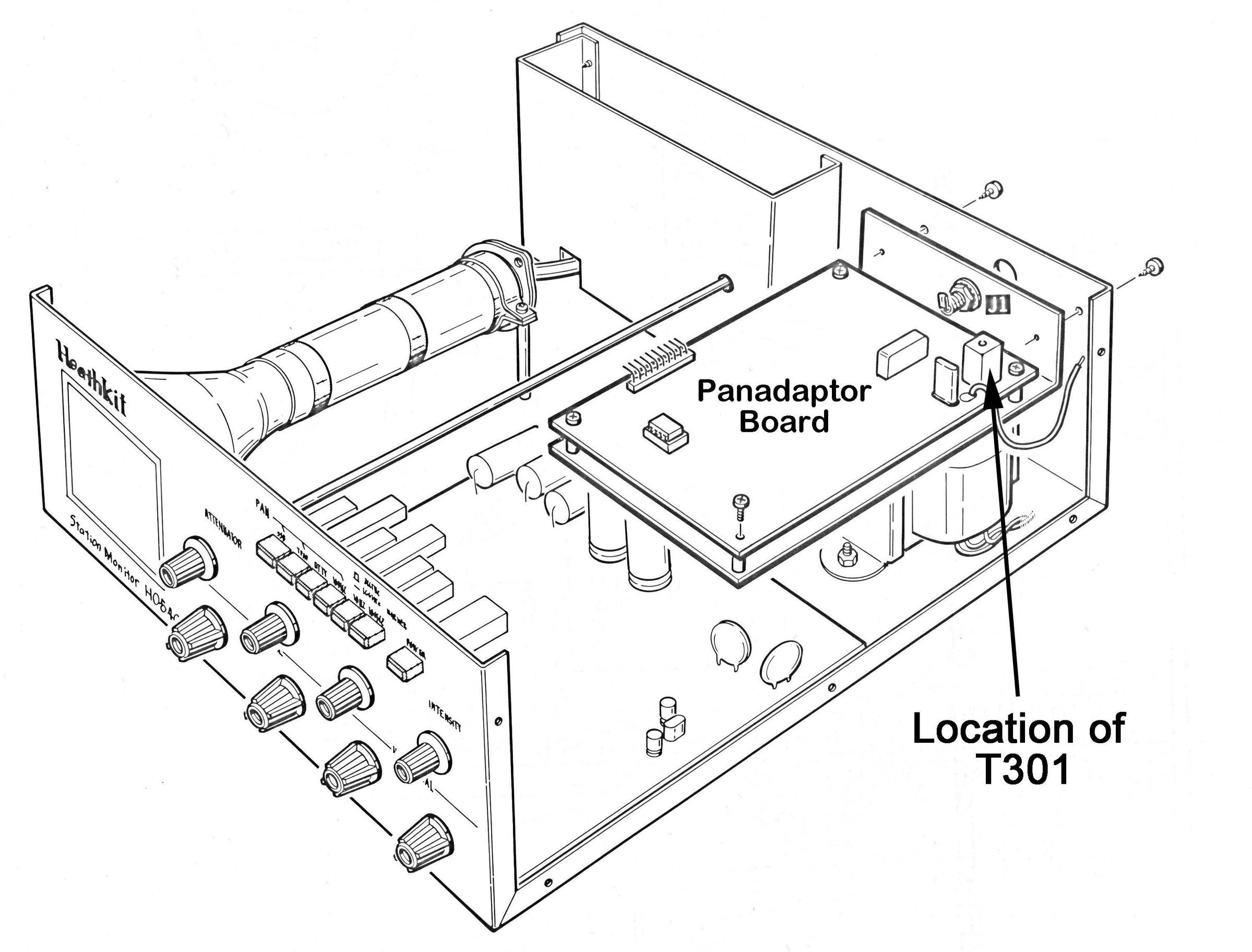 Panadaptor use requires connection to the first IF stage of your receiver and is for use with receivers that have IF frequencies of 3395 kHz (the SB and HW series) or 8830 kHz (the SS-9000 and HW-5400). To check which IF the unit has been wired for it is necessary to remove the cover and look at the part number for transformer T301. Refer to illustration for the location of T301.