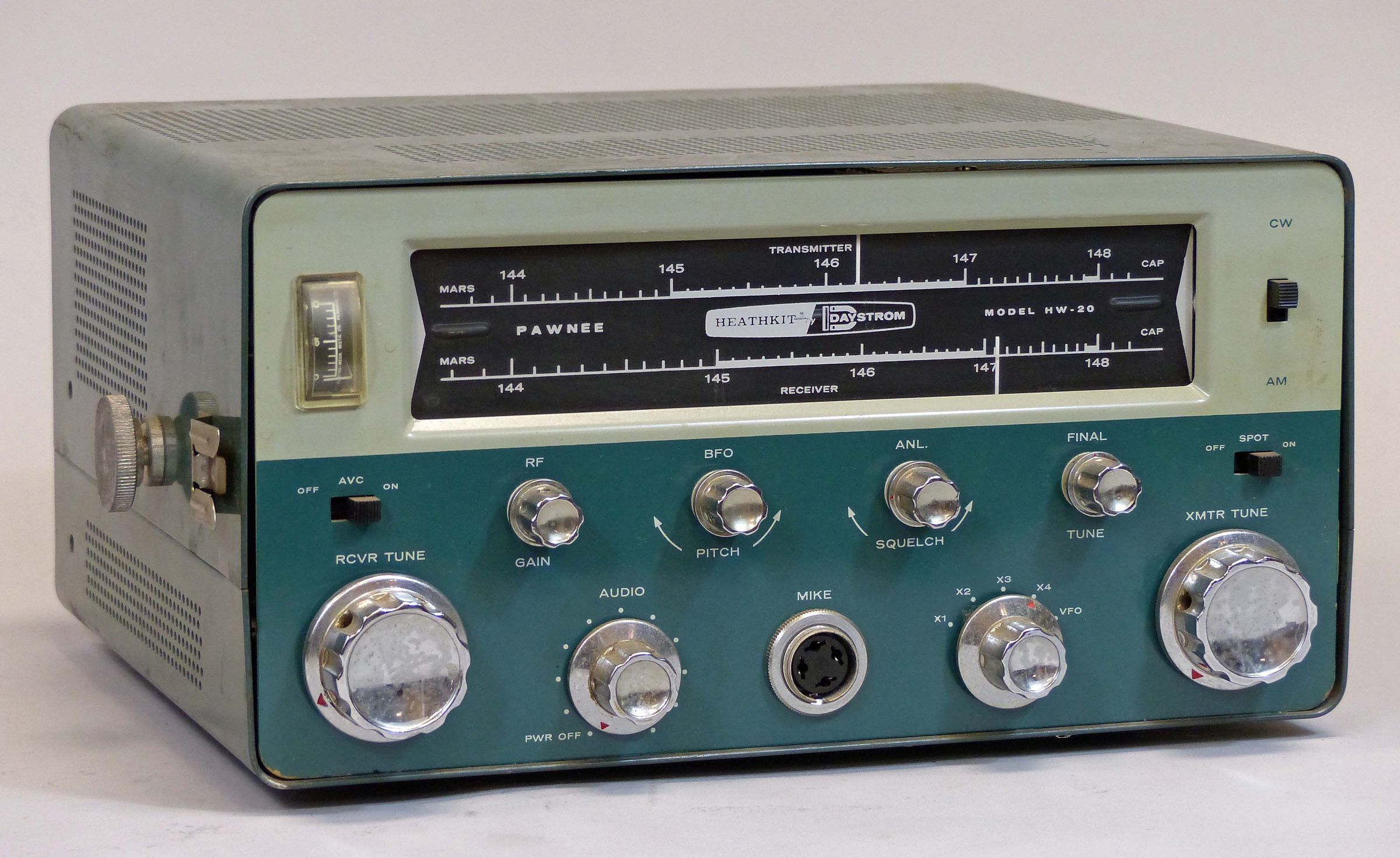 The HW-20 is the same basic design as the HW-10 except for frequency coverage. The unit is built around 15 tubes. The frequency coverage of the HW-20 is 143.8 to 148.2 MHz.