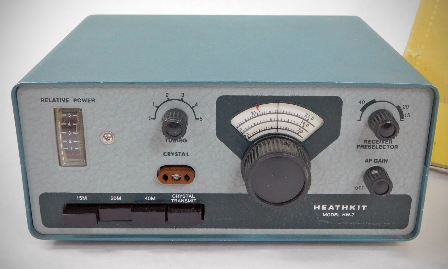 The HW-7 was the first of three very successful QRP transceivers. The HW-7 covers the CW portions of the 40, 20, and 15-meter band and features VFO or crystal-controlled operation and push button selection of band.