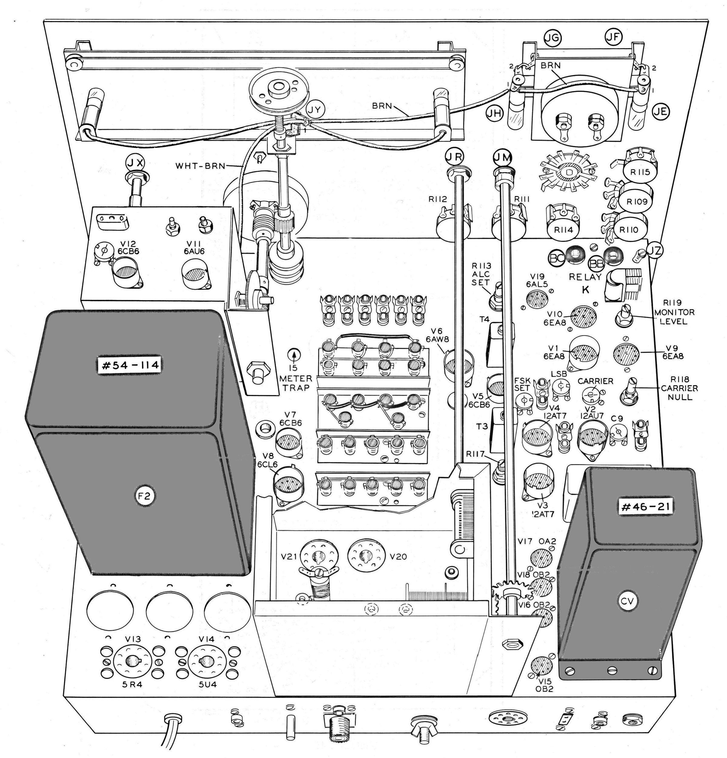 Tubes: (1) 5U4GB, (1) 6AU6, (2) 12AT7, (1) 12AU7, (1) 6AL5, (3) 0B3, (1) 0A2, (1) 6CL6, (3) 6CB6, (2) 6146, (1) 5R4GY, (1) 6AW8, (3) 6EA8