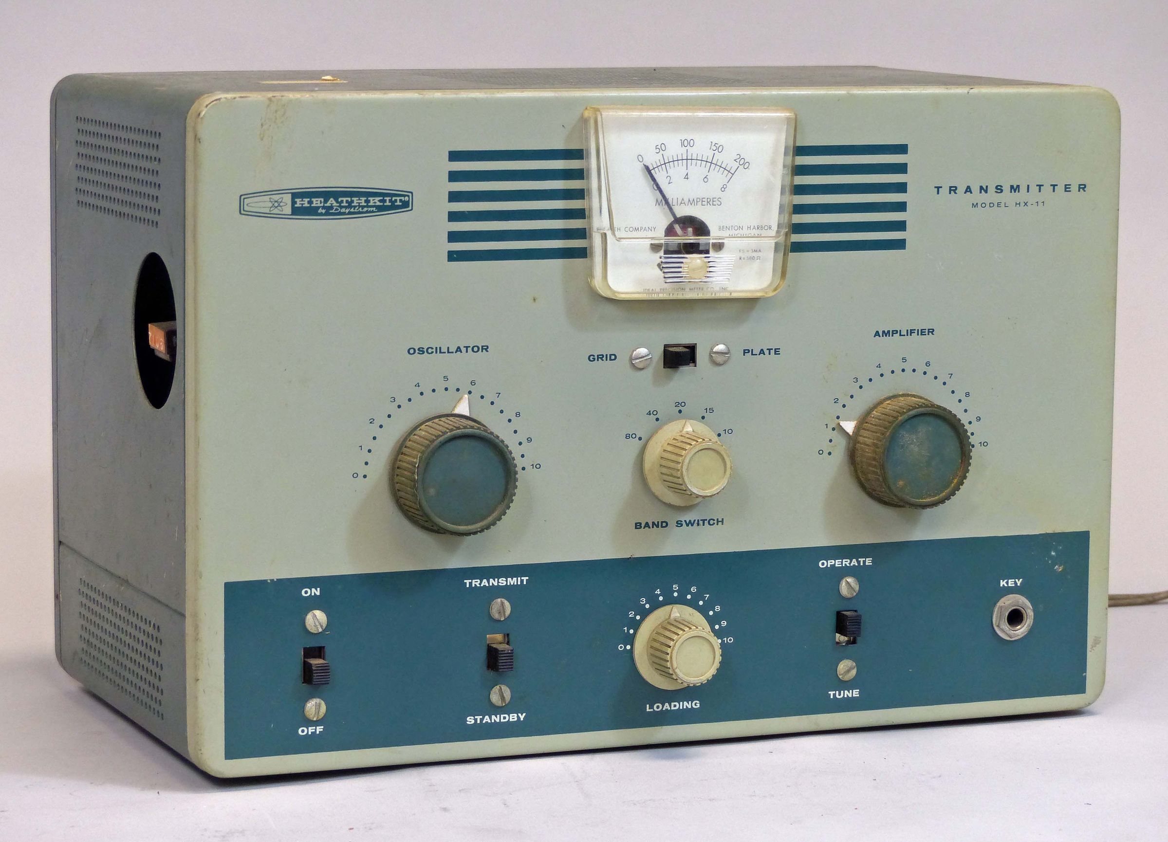 The HX-11 was released in November 1961 and was sold for only about a year and a half. The HX-11 is essentially an updated version of the DX-20. While they are many similarities to the DX-20 (tube line-up, power output, front panel layout, crystal access hatch, and size cabinet, for example), there are some significant differences, the obvious of which are the paint style and meter.