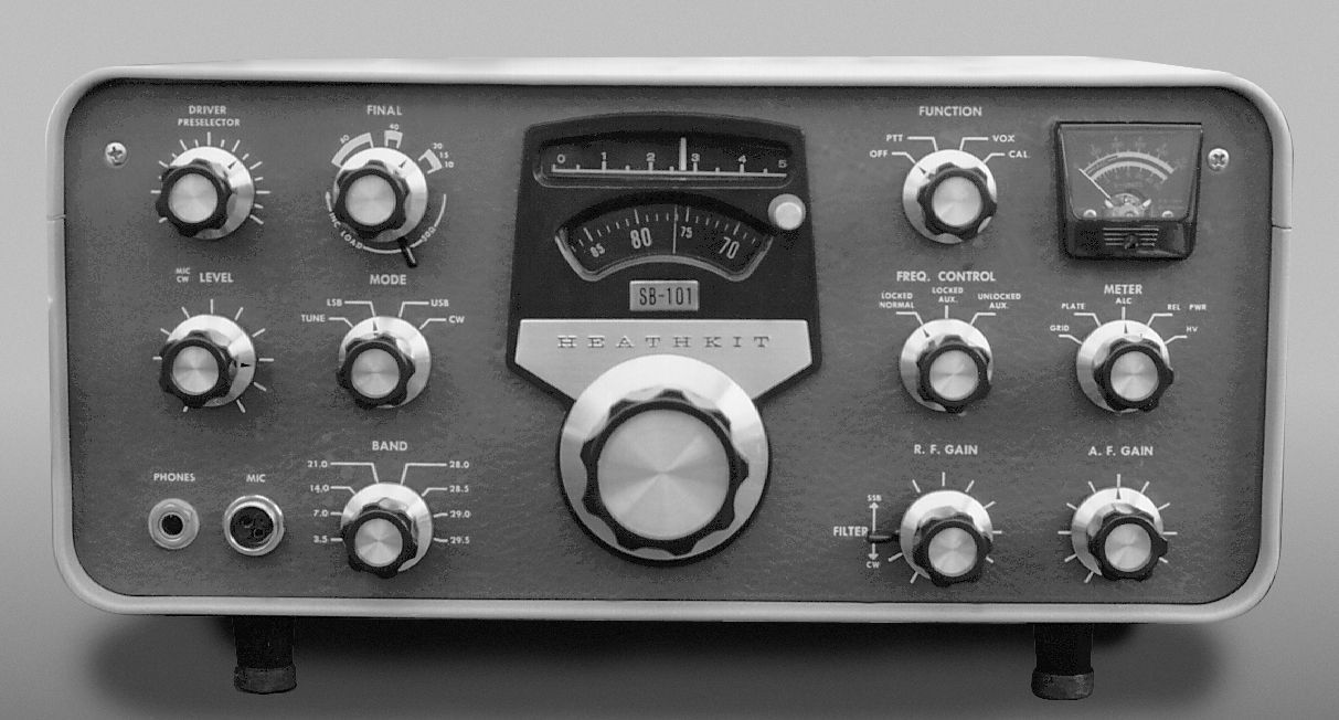 In 1967 Heath upgraded the popular SB-100 transceiver and renamed it the SB-101. There were two significant improvements in the SB-101. The first was the addition of a 400 Hz CW filter option. If this filter was installed the operator could select either the SSB or CW filter from a switch on the front panel. Heath advertised that the SB-101 was “the first transceiver on the market with front panel selection of SSB or CW filters.” The filter selector switch is a small lever switch located concentrically under the RF gain control. The presence of the CW filter can most easily be determined by removing the SB-101 from its enclosure. The SSB and CW filters are mounted on a metal bracket located on the underside of the chassis at the front of transceiver. Both filters are small black rectangular boxes about 2.5 inches wide and are installed side by side. If two boxes are seen, the CW filter is installed. The CW filter is usually clearly marked as being a 400 Hz unit.