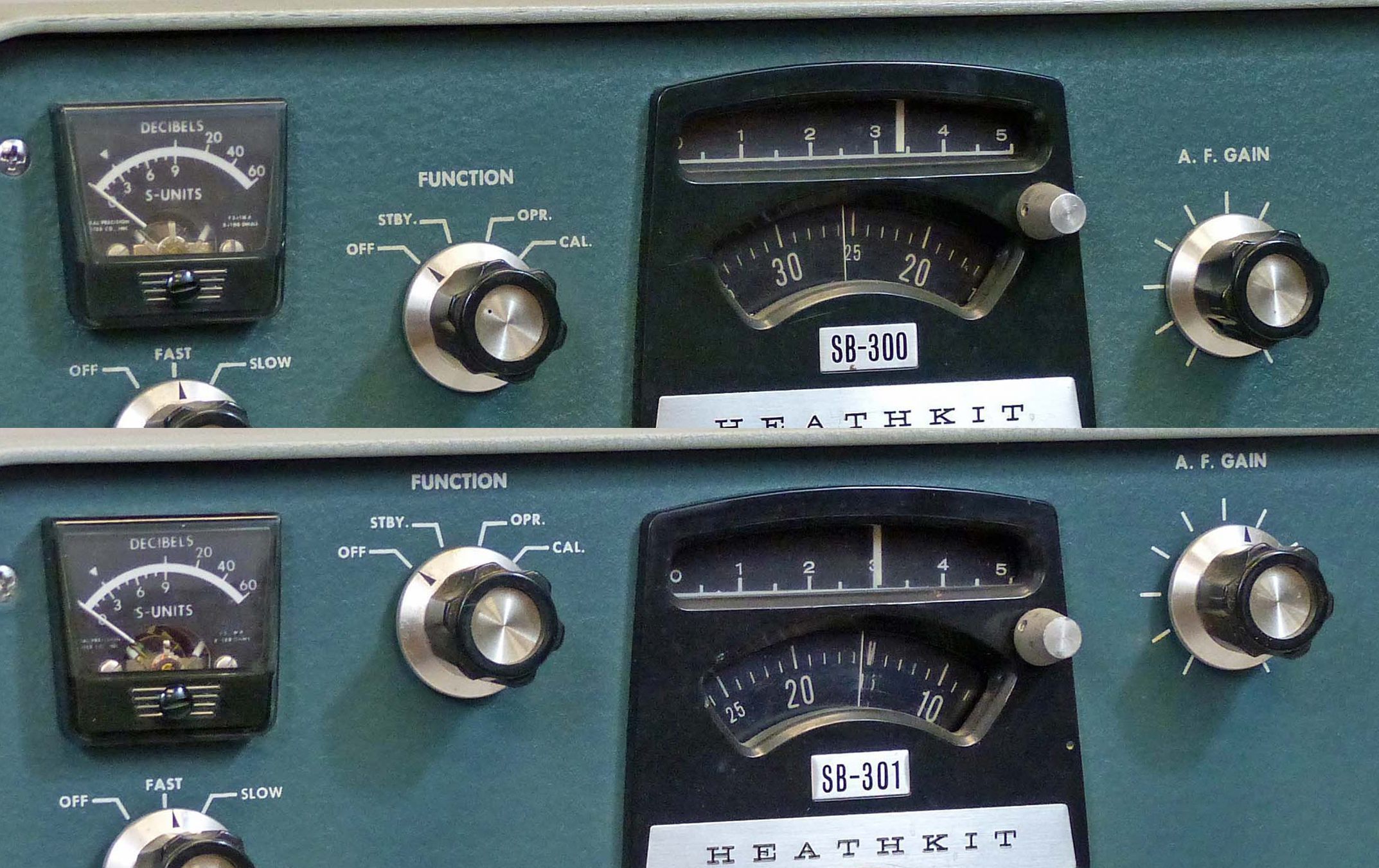 In addition to a meaningful improvement in sensitivity (managed mostly by a change in the tube lineup), improvements found in the 301 include the addition of a radio teletype (RTTY) position on the mode switch. When activated, a carrier at 3392.11 kHz is produced that causes detected signals at 2125 Hz and 2975 Hz (850 Hz shift) to fall within the SSB filter’s bandpass. 170 Hz RTTY can be tuned via the 400 Hz CW filter (if installed).