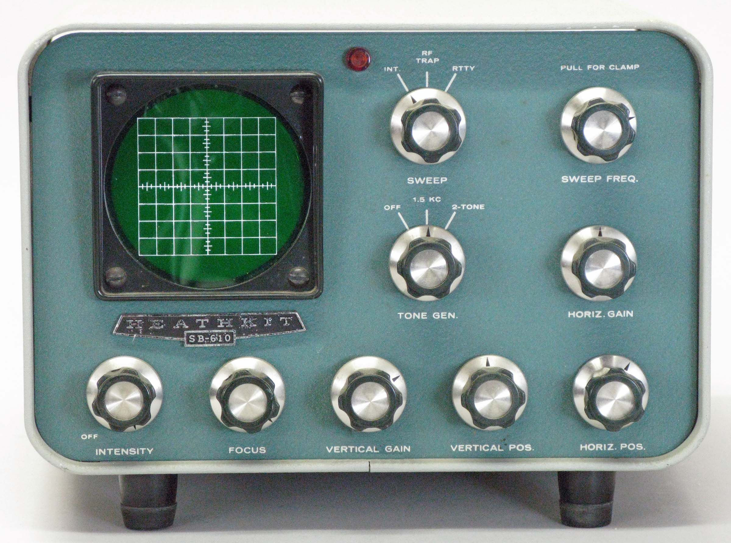 Unlike the HO-10, the SB-610 provides vertical amplifier wiring options to accommodate any receiver IF from 455 kHz to 6 MHz for use in analysis of received signals. An option is also available for 1 kHz to 150 kHz operation for RTTY use, or for use as a simple oscilloscope. Since the correct parts may be very hard to find, these options are not easy to change after the fact, and there is no simple field check to determine which option has been chosen. However, conversion to the oscilloscope/RTTY option is easy since it requires only the removal of parts.