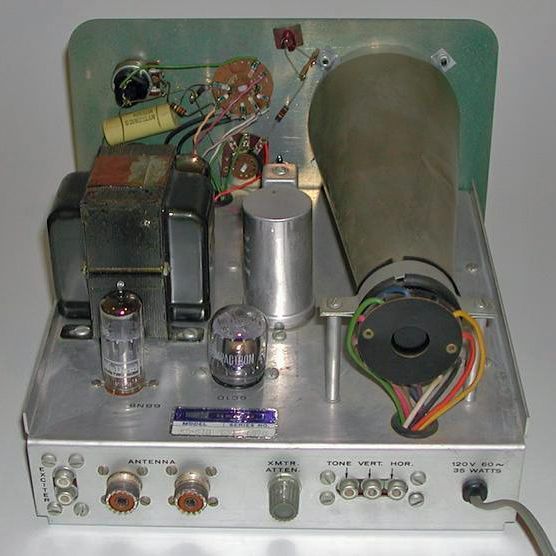 The SB-610 is essentially an HO-10 put into a new cabinet, but there were a few differences worth noting. The SB-610 uses only four tubes (excluding the CRT), because the power supply is solid state. As in the HO-10, no PC boards are used—all wiring is point to point.