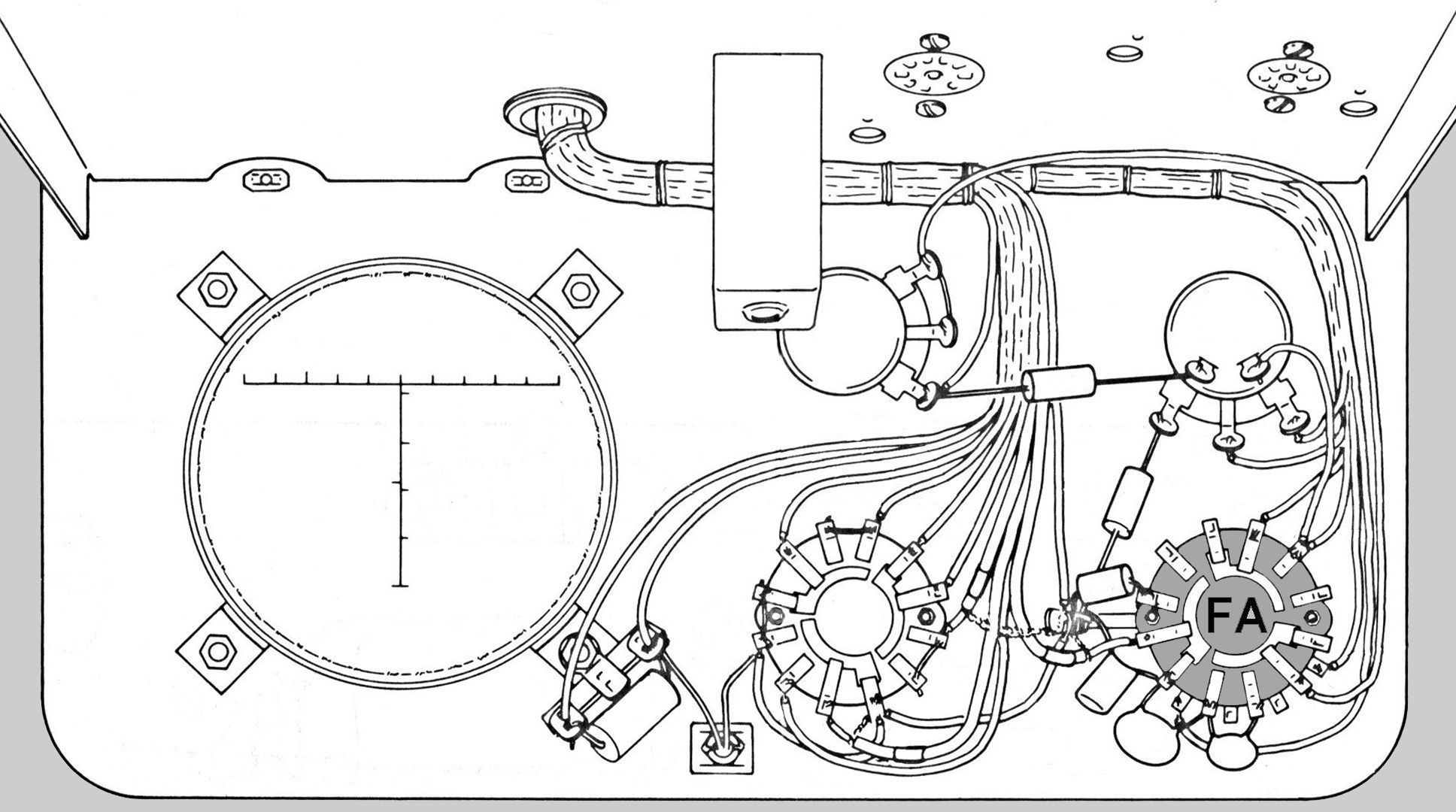 The 620 is built around six tubes (excluding the CRT), and has a built-in solid state power supply. All wiring is point-to-point.