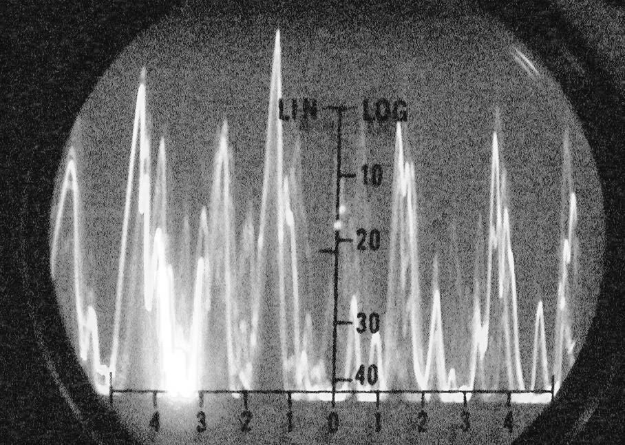 Easy to spot at a distance because of its bright yellow CRT, the SB-620 is an updated and refined version of the HO-13. Like the HO-13, the SB-620 is designed to provide a visual presentation of the band to which you are tuned. The 620 will present a portion of the band as wide as 500 kHz to as narrow as 10 kHz, depending to some extent on the IF frequency for which it has been wired. The presentation is centered on the frequency your receiver is tuned to, and allows you to “see” up and down the band. Signals appear along a calibrated line as “pips” on a high persistence CRT. The SB-620 is particularly useful in spotting band openings and for finding clear spots in a crowded band. With some practice the user can determine not only the frequency of signals elsewhere on the band, but their strengths and emission types as well. The 620 also can be used as a spectrum analyzer, but this use will not be described here.