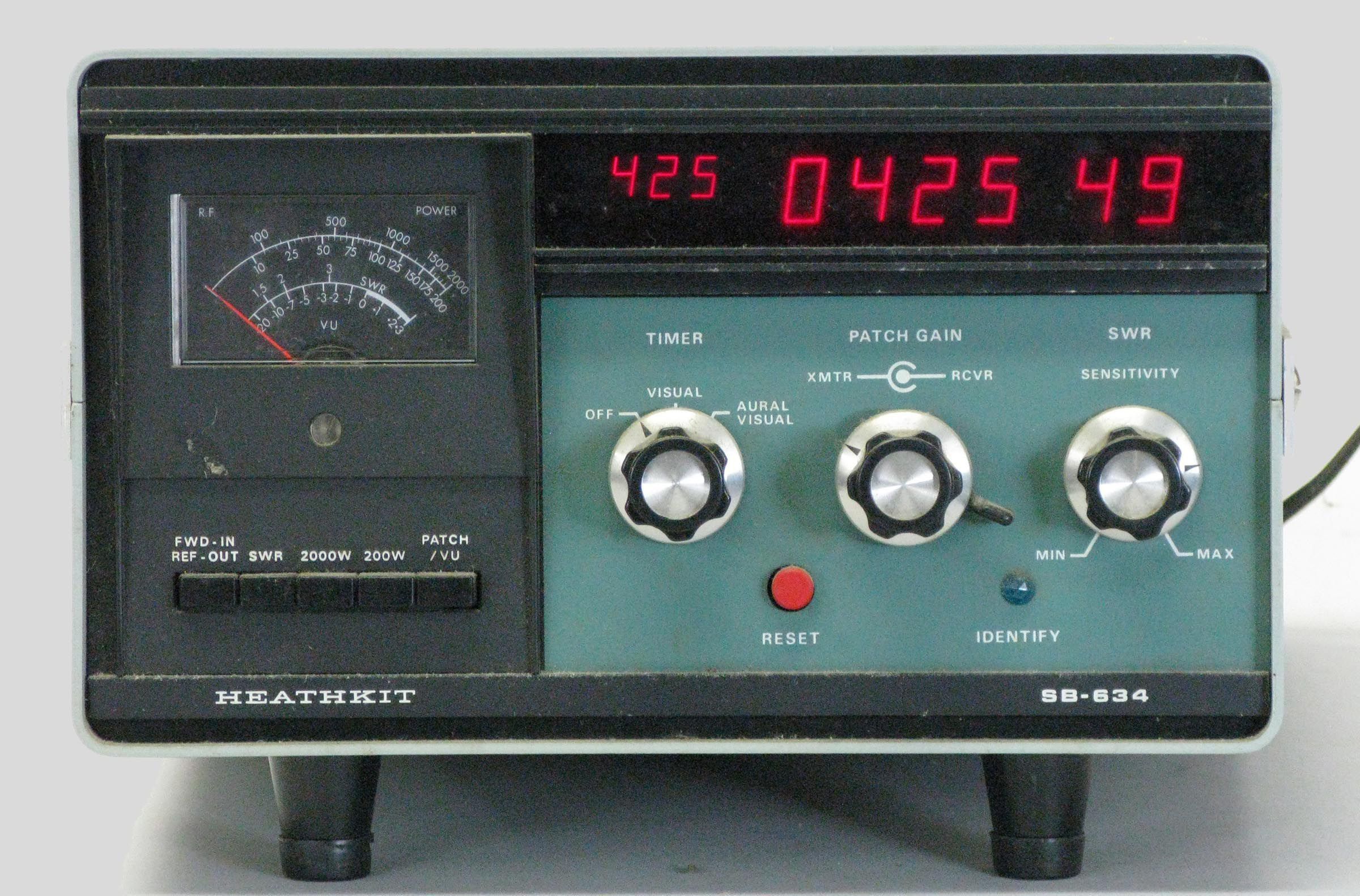 The SB-634 is built on three PC boards and is really just a collection of existing Heath products put into a single box. The 634 contains a six-digit, 24-hour clock based on the GC-1094, a phone patch based on the old but reliable technology of the HD-19, a power/SWR meter based on the HM-102, and a 10-minute digital ID timer. The power meter is a feature not found in the SB-630, which had only an SWR meter. Overall, the SB-634 is a useful accessory and represents a substantial improvement over the SB-630.