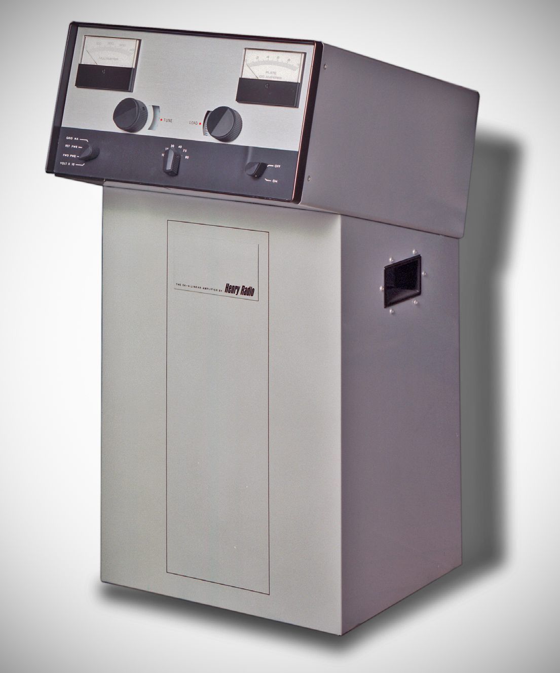 The 2K-4 linear used the same 3-500Z final tubes as the 2K-3 but received a style makeover in the form of a tilted RF deck atop the floor console.