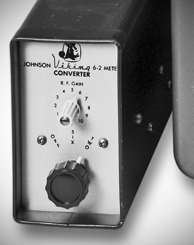 The Johnson 6N2 converter provided front-panel band switching from normal receiver operation to either 6 or 2 meters. It was available in output ranges of 26–30, 14–18, and 28–30 MHz.