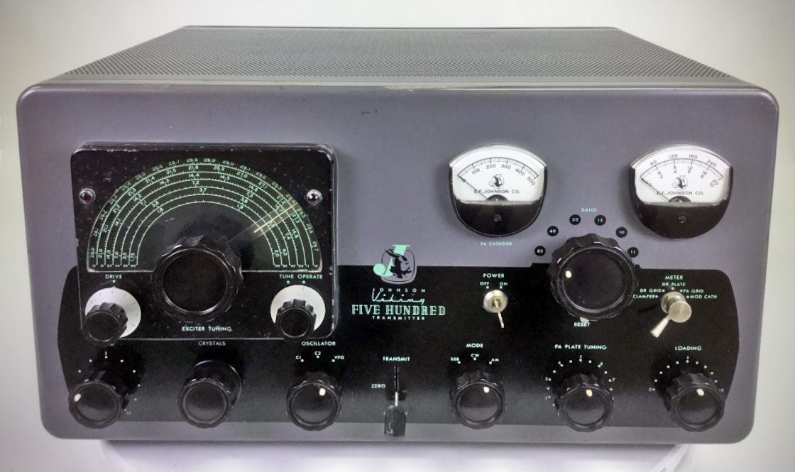 The Viking Five Hundred was a complete 80–10 meter, band-switching, 500 watt transmitter. It had wave-shaped keying on CW and low-level clipping on AM phone. The 500 could also be used on SSB with an external exciter. The 4-250A final (4-400A in later models) was modulated by a pair of 811-As. The modulator and power supply were on a separate chassis.