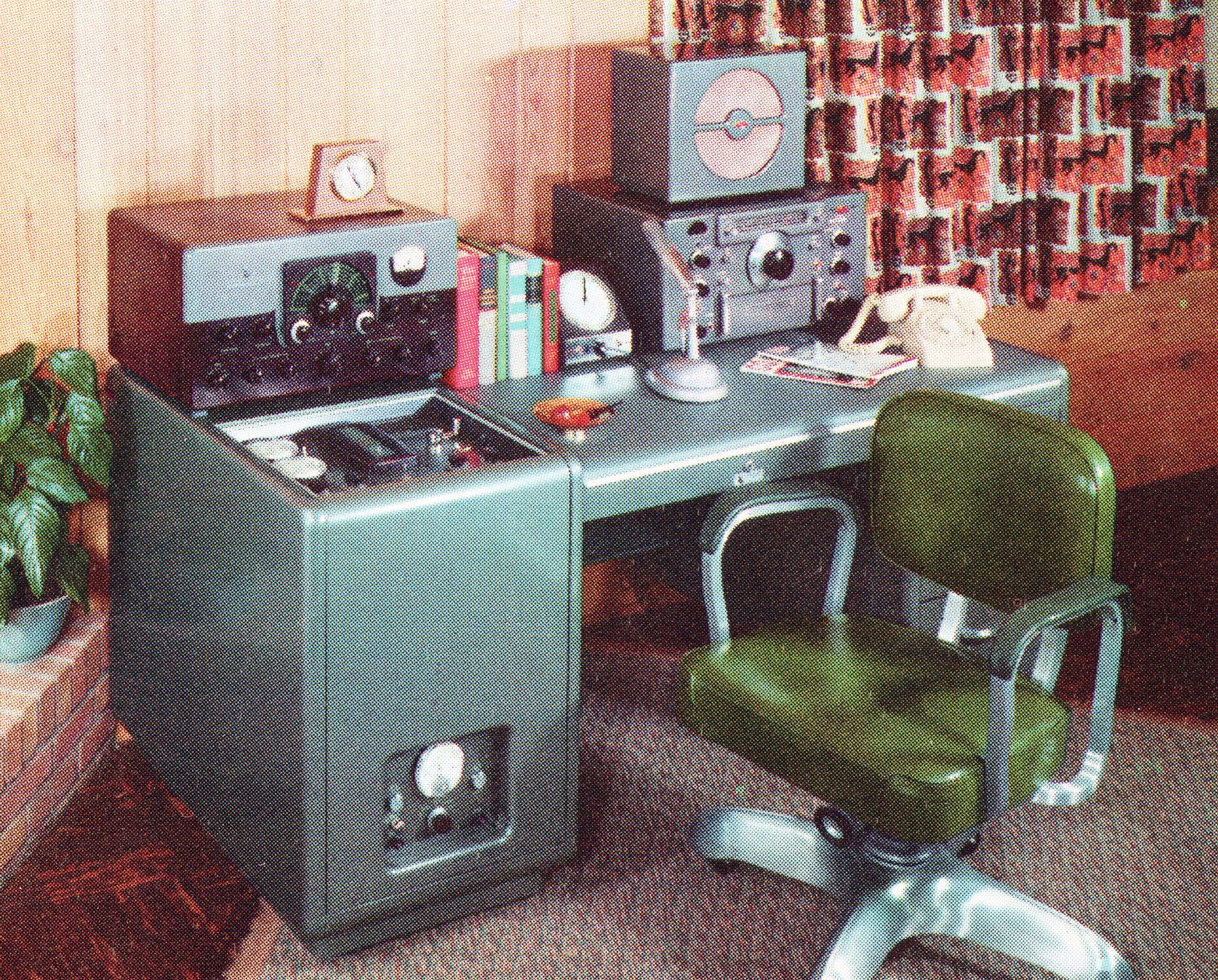 In April, 1957, Johnson bought a four-page full color insert in QST and CQ magazines to show off its new amplifier, often referred to as the casually as the Desk Kilowatt.