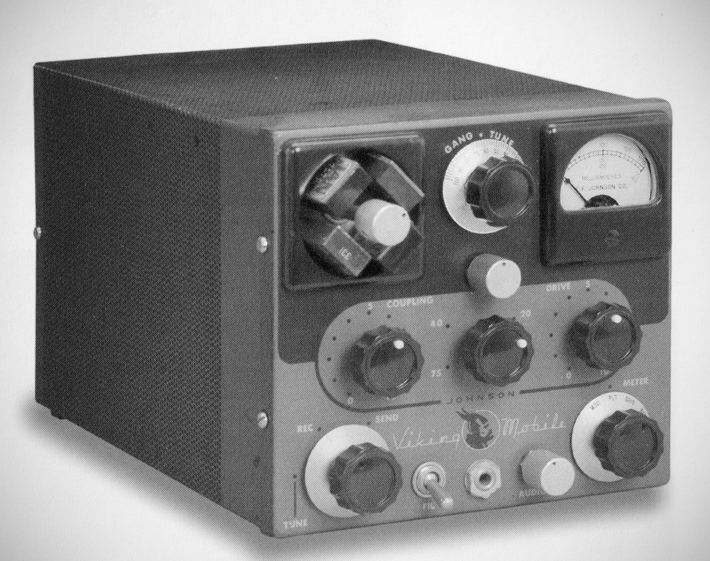 The Viking Mobile was a band-switching AM transmitter covering 75, 20, and 10 meters with provision for a fourth band. Its circuits were gang-tuned and all stages were metered. The transmitter was crystal-controlled or could be used with an external VFO. Power input to the 807 final was 30 to 60 watts depending upon the plate voltage available.