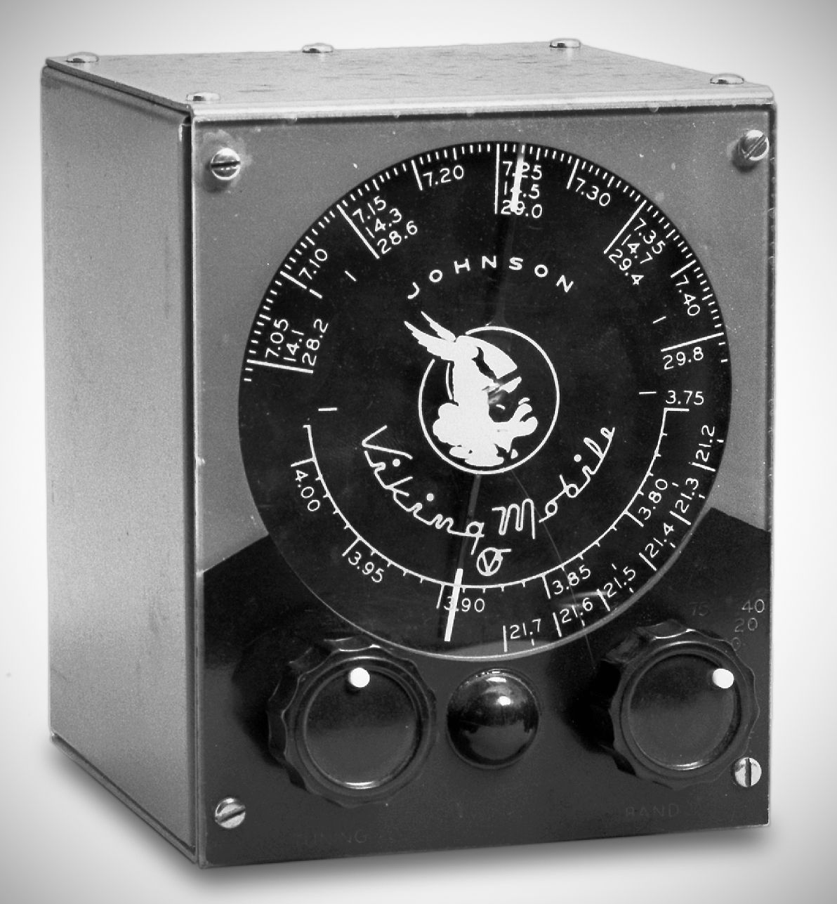 The Johnson Viking Mobile VFO was engineered to withstand road shock and vibration. It covered 75, 40, 20, 15, and 10 meters, which were calibrated on its edge-lighted dial. The VFO used three tubes and required both filament and B+ voltages.