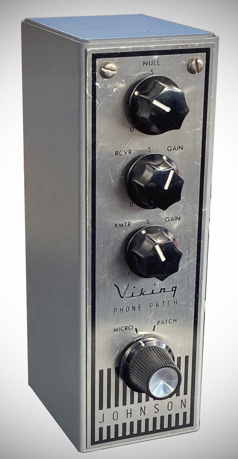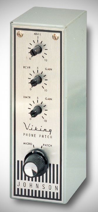 The Model 250-46 Johnson Viking phone patch was a completely automatic hybrid-type unit. It operated in the manual, PTT, and VOX modes. When switched to the “Patch” position, the receiver’s speaker was disconnected and audio was diverted to the telephone handset.