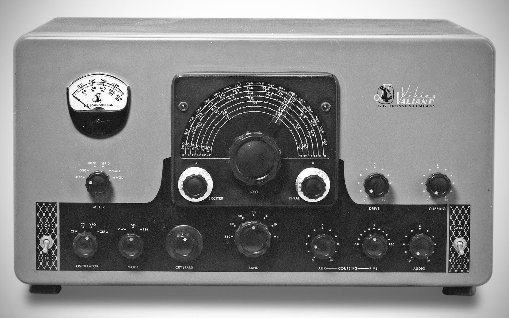 The Viking Valiant ran 275 watts CW, and 200 watts AM on 160–10 meters. It was also an SSB transmitter when used with an external adapter. The final amplifier was three 6146s in parallel. Its speech circuits had low-level clipping and an audio low-pass filter.