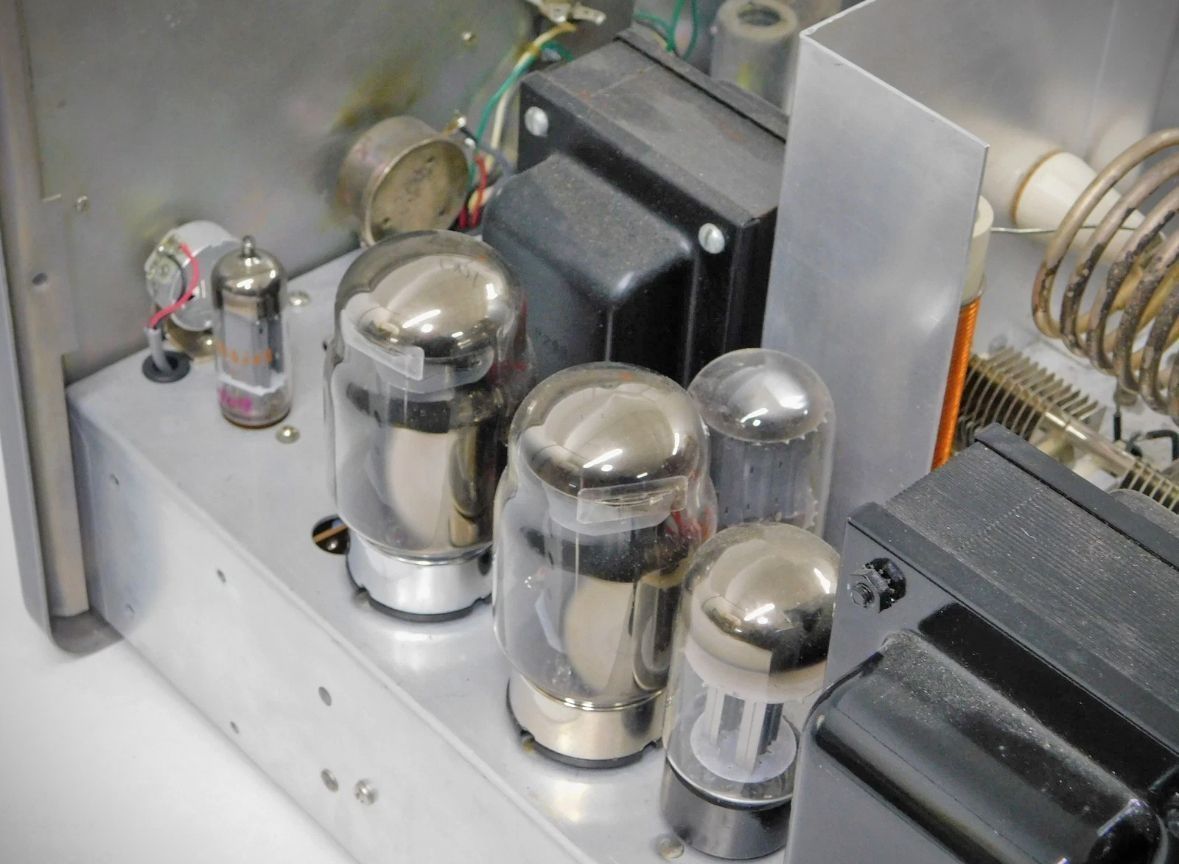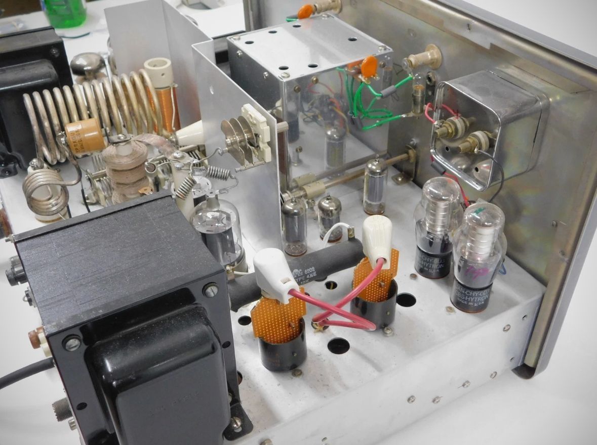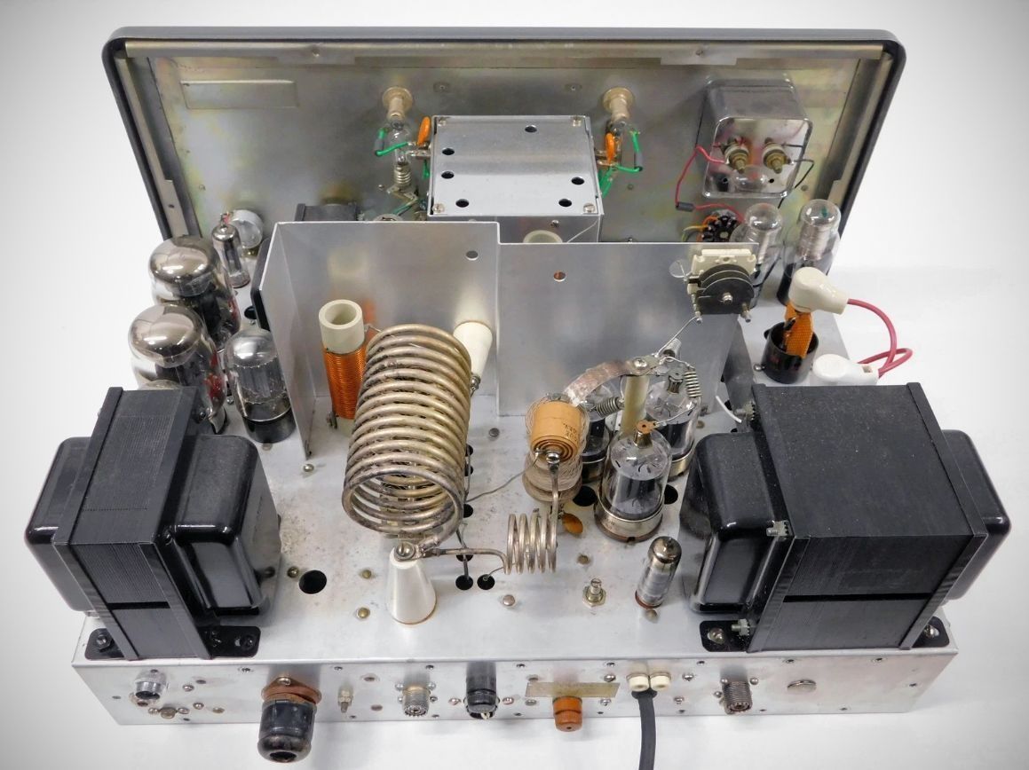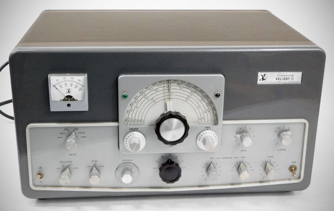 Dressed up in Johnson's new style, the Valiant II shared most operating features and specifications with the original Valiant transmitter. It added rear panel connections for RF and control circuits when used with a sideband adapter. The Johnson Sideband Adapter was a filter-type generator that worked on 80 through 10 meters. Its 2-watt output would drive a Valiant or Valiant II to full power. The adapter's power supply was a separate unit and could be mounted remotely.