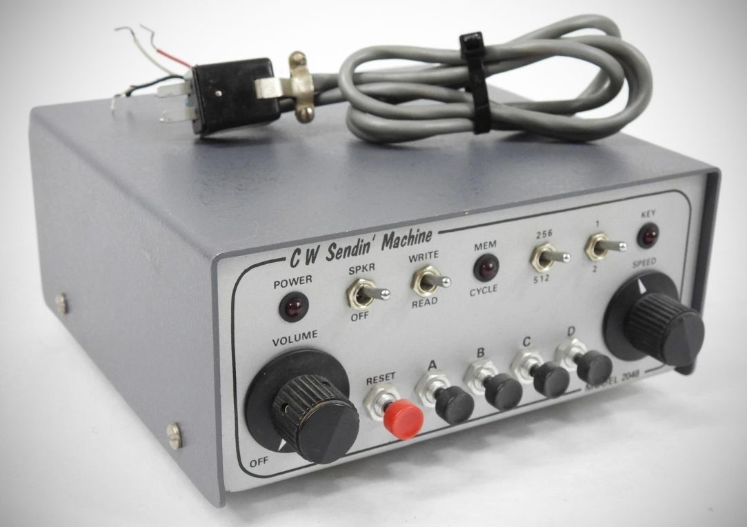 The CW Sendin' Machine model 2048 comes with two 1024 bit memories, and an automatic reset feature is available as a modification which can be