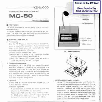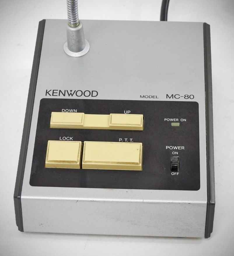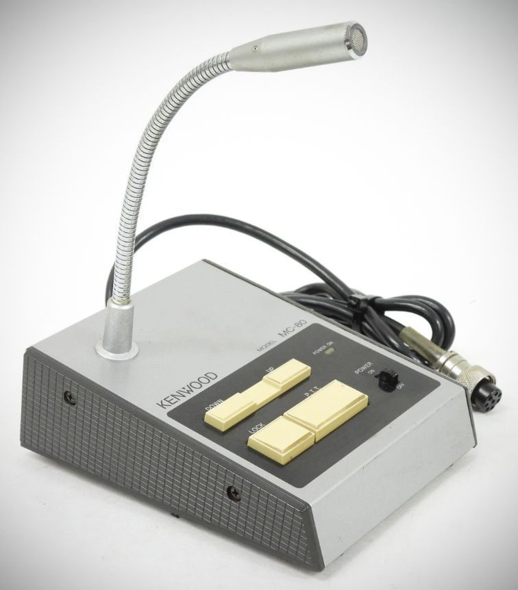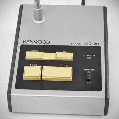 The Kenwood MC-80 is a desktop electret condenser microphone designed for use with Kenwood amateur radio transceivers, known for its clear audio quality and built-in preamplifier. It features an 8-pin connector and is compatible with a range of classic Kenwood models.