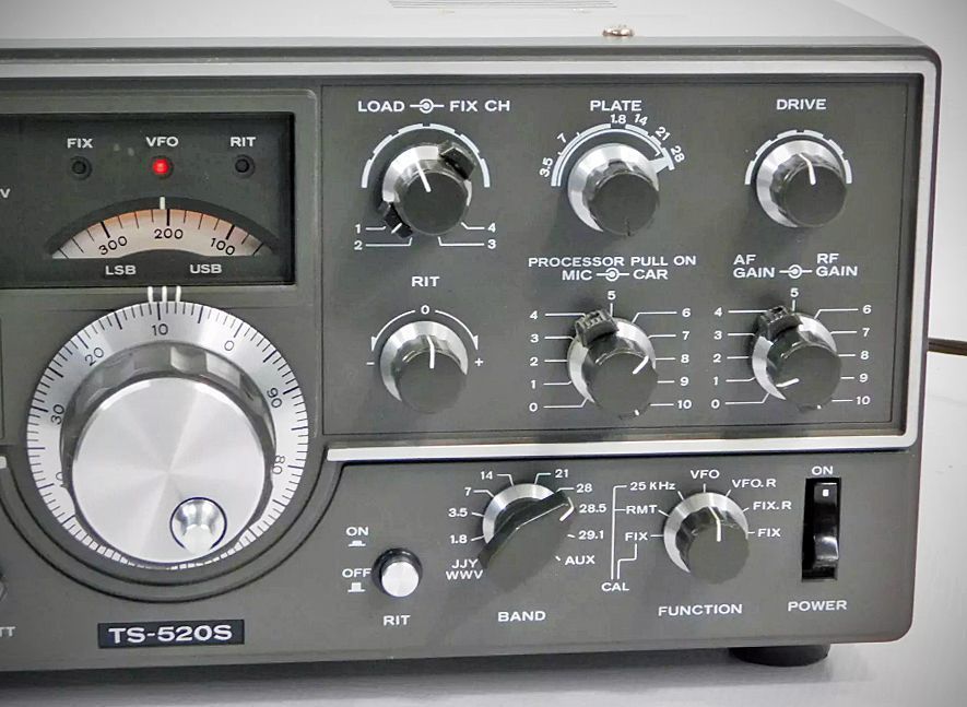 The TS-520S retains all of the features of the original TS-520: RIT control • 8-pole crystal filter • Built-in 25 KHz calibrator • Front panel carrier level control • Semi-break-in CW with sidetone • VOX/PTT/MOX • TUNE position for low power tune up • Built-in speaker • Built-in Cooling Fan