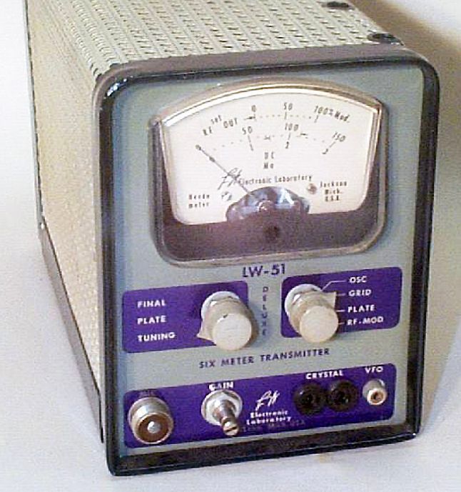 Electronic Laboratory of Jackson, Michigan made a line of 6 and 2 meter gear in the 1950s and early '60s .The LW-51 transmitter ran 50 watts input on 6 meters with a 6146.1t was plate-modulated. The factory-assembled LW-51 came with tubes and a crystal; the kit version did not. The LW-51 Deluxe included a cabinet and meter.