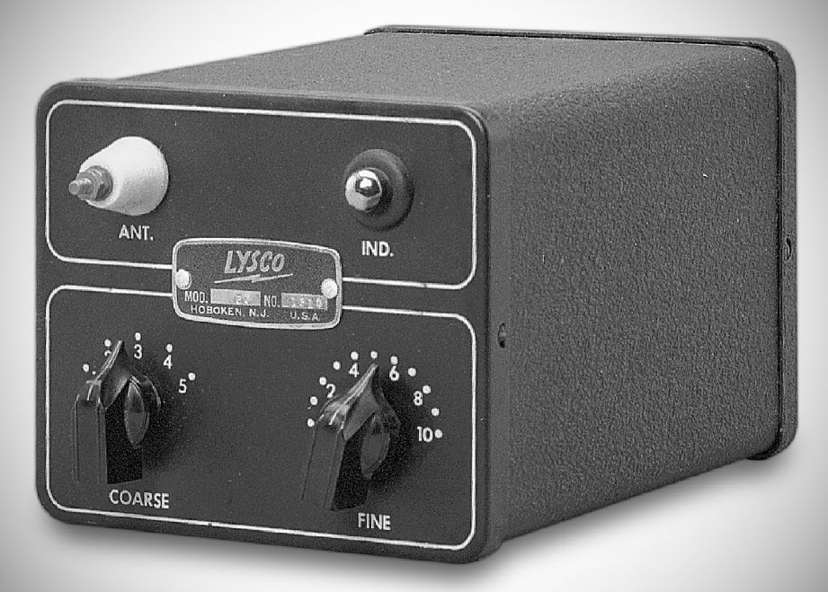 The Lysco model 50 antenna coupler was designed for use with random-wire antennas 50 feet or longer on 160–10 meters. It was rated at 75 watts and had controls for a tapped inductor and variable capacitor. A neon bulb served as a tuning indicator.