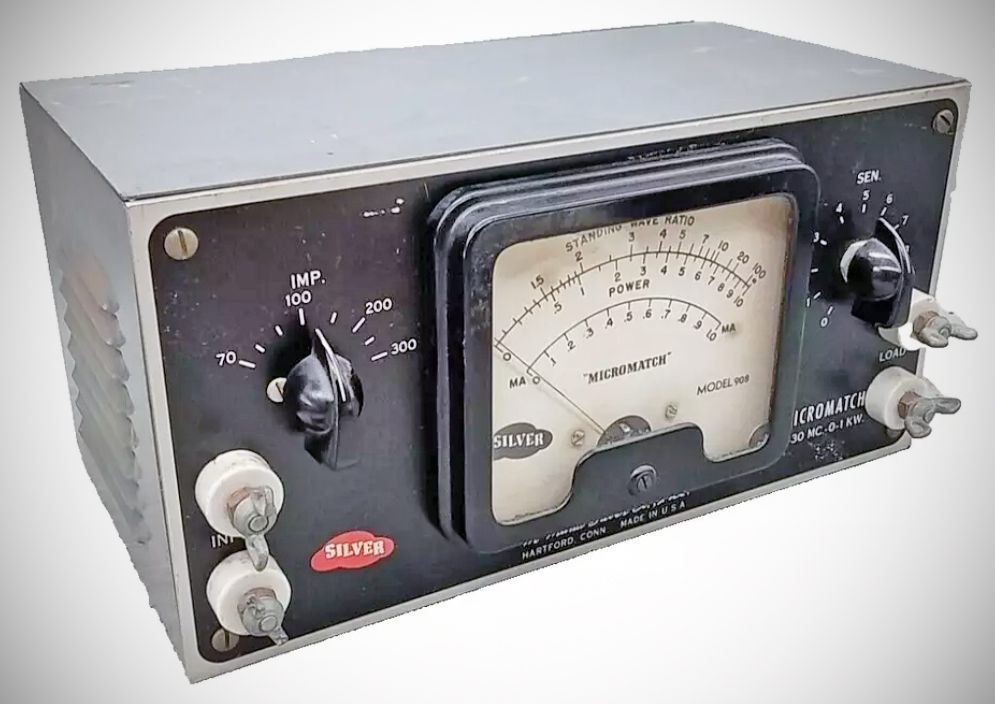 Based on a construction article in the April 1947 issue of QST (and featured on the cover), by Mack C. Jones, (W1PNX). Jones' company almost immediately began commercial sales of the unit with an ad in QST the following month. The MM-1 was the first commercially available SWR meter. Later licensed to McMurdo Silver which made it's own version, first in July 1947.