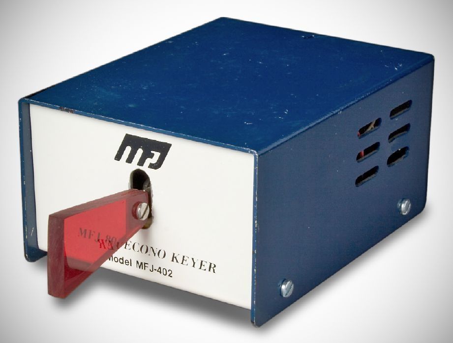 The 402 Econo Keyer used the Curtis 8044 chip and had a built-in, adjustable single-lever paddle. When used with an external squeeze key, it was capable of iambic operation. It lacked the monitor and speaker of the more expensive model 404. Speed range was 8–50 wpm.
