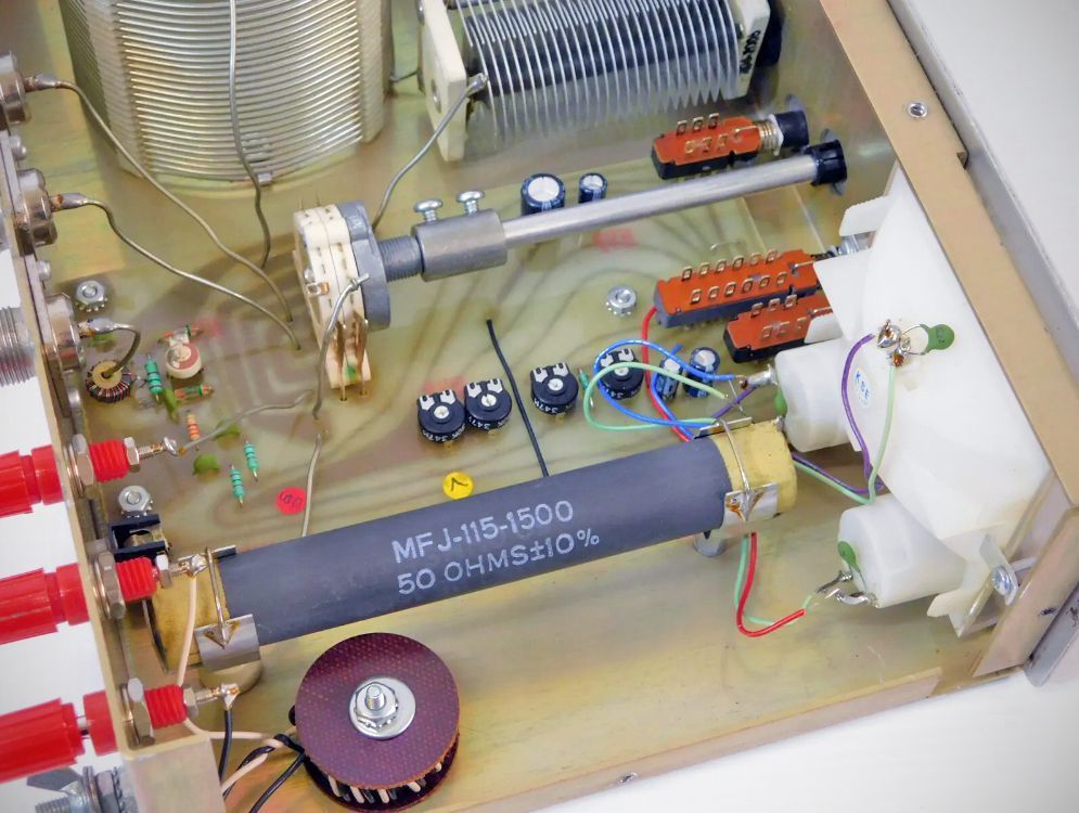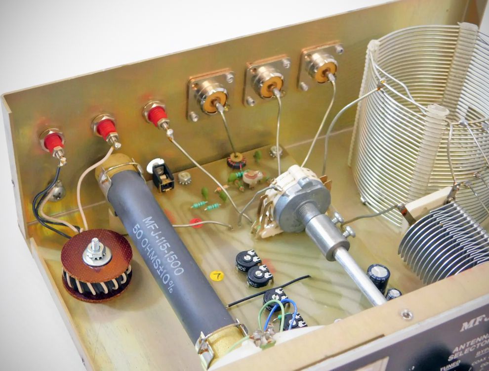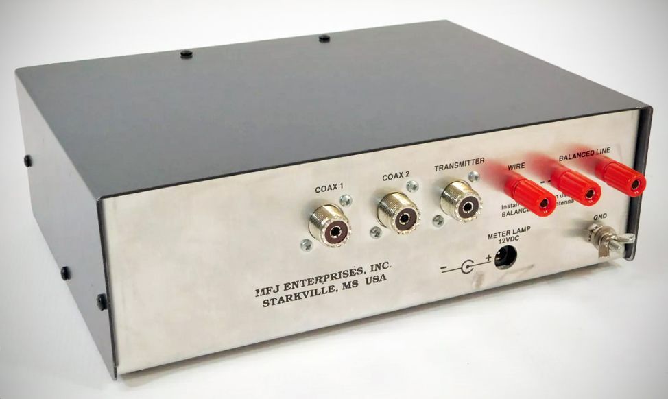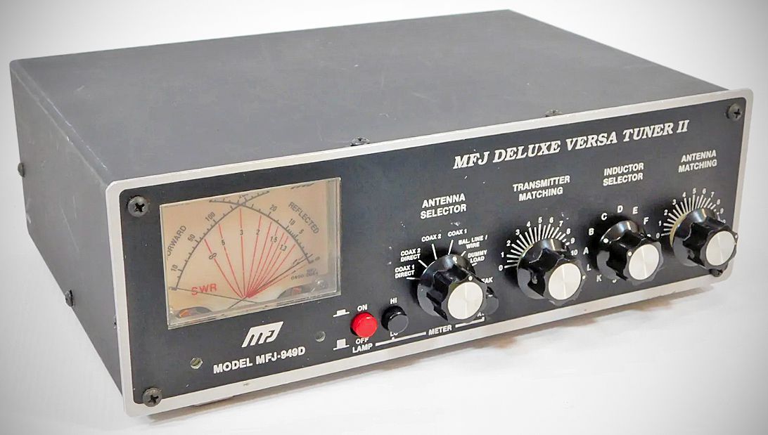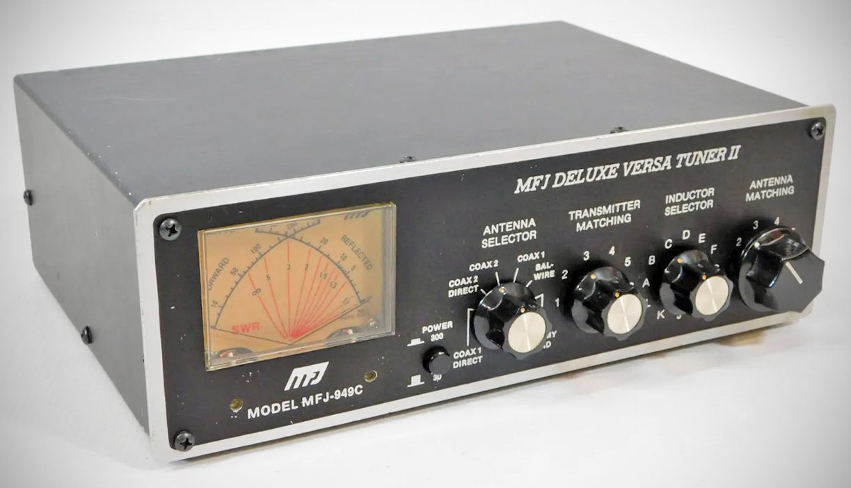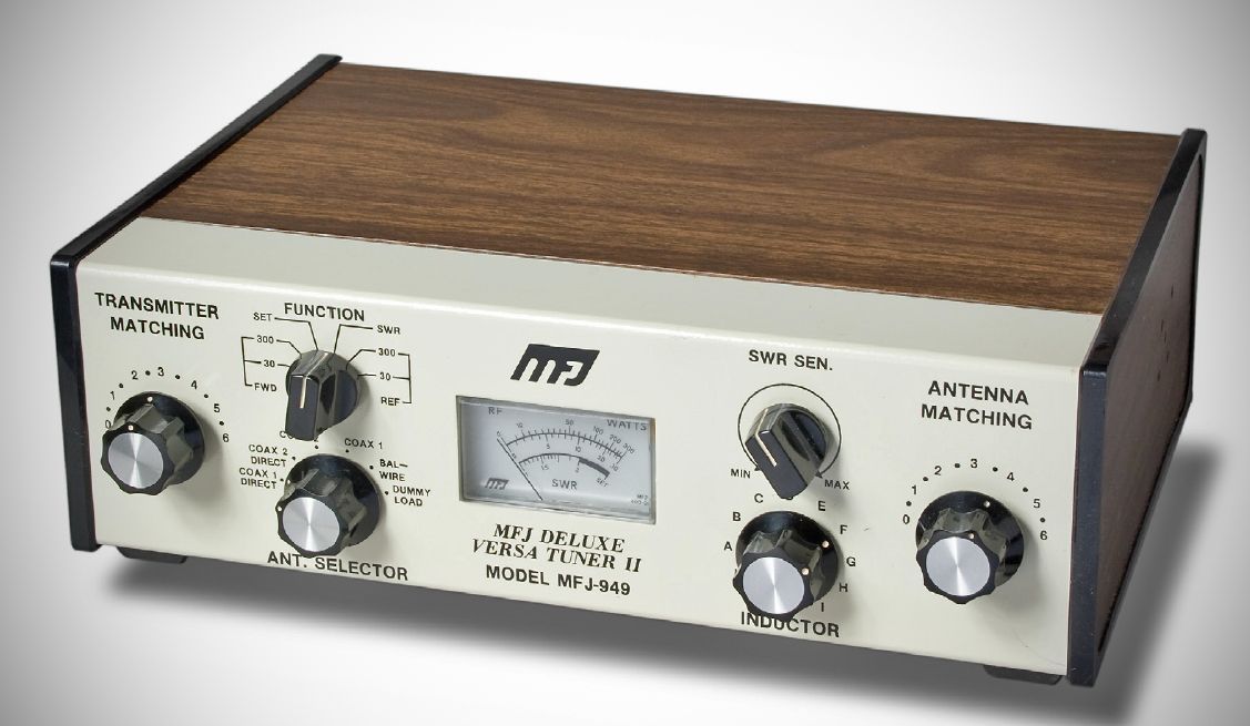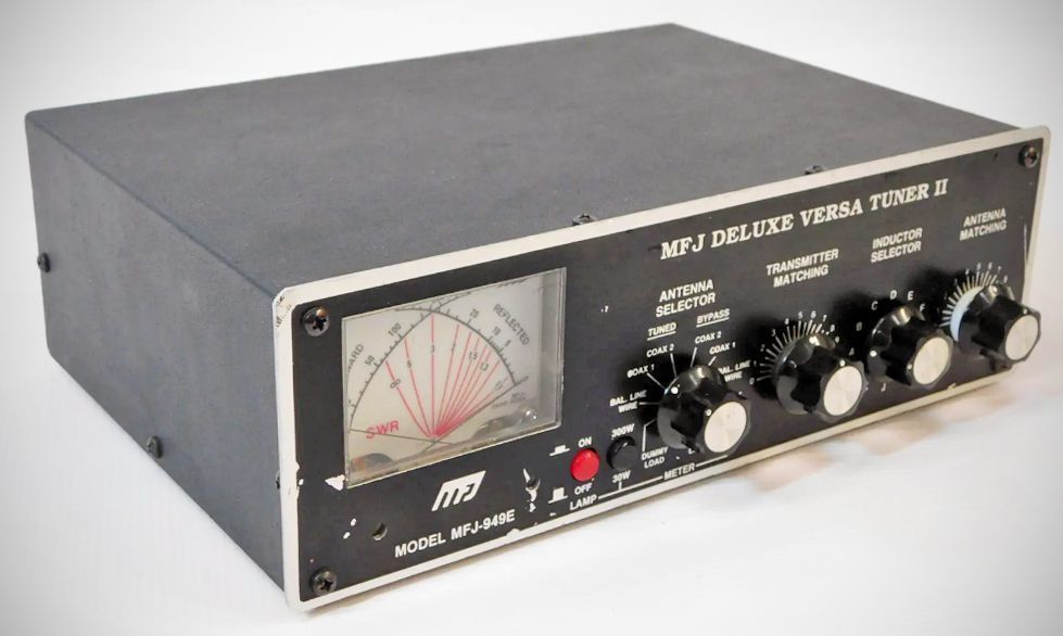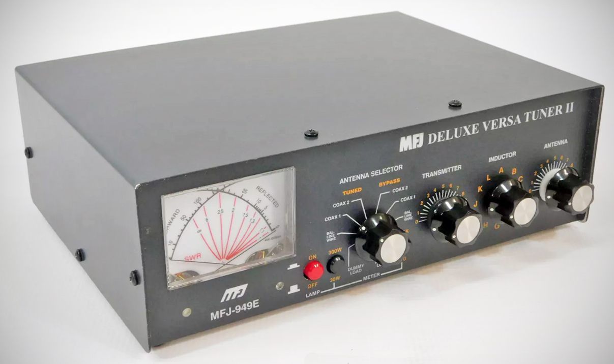 The MFJ 949 Versatuner II 300-watt antenna tuner had an internal 50-watt dummy load. It also featured a watt meter with 30 and 300 watts and an SWR meter that functioned with as little as 5 watts.