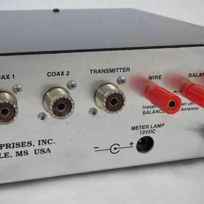 An internal eight position antenna-selector switch selects a built-in 50 ohm dummy load, two separate coaxial line outputs, or a single wire line-balanced line output.