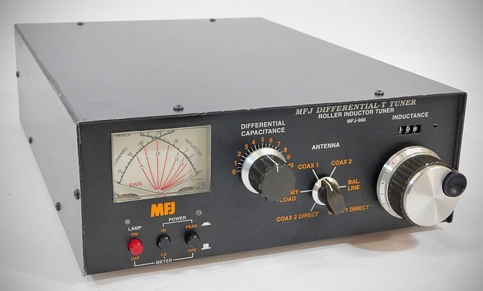 MFJ's Differential-T Tuner uses a differential capacitor that makes tuning easier than ever. It gives minimum SWR at only one setting. Broadband coverage ends constant re-tuning. The unit uses a roller inductor antenna tuner that handles 3KW PEP SSB amplifier input power (1500 Watts PEP SSB output power). It tunes 1.8 - 30 MHz continuously, including MARS and WARC bands.