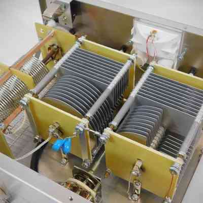 New large 500 pF air variable capacitors provide twice the capacitance for more efficient operation on 160 and 80 Meters. Specially shaped plates give low minimum capacitance resulting in an extremely wide matching range from 160 thru 10 Meters.