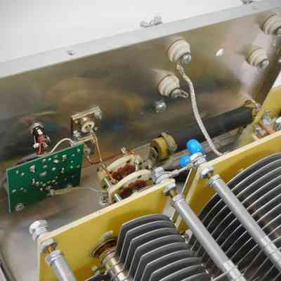 The antenna switch is made of two individual ceramic wafers wired in parallel. Extra wide spaced, heavy duty contacts handle extreme voltages and currents. You can select two coax antennas (directly or through tuner), balanced line/random wire, or built-in dummy load.